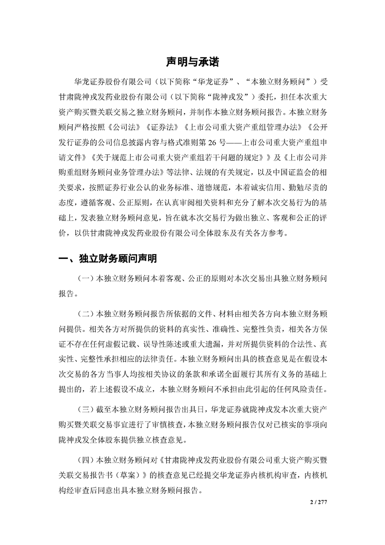 華龍證券股份有限公司關(guān)于甘肅隴神戎發(fā)藥業(yè)股份有限公司重大資產(chǎn)購(gòu)買(mǎi)暨關(guān)聯(lián)交易之獨(dú)立財(cái)務(wù)顧問(wèn)報(bào)告(二次修訂稿)