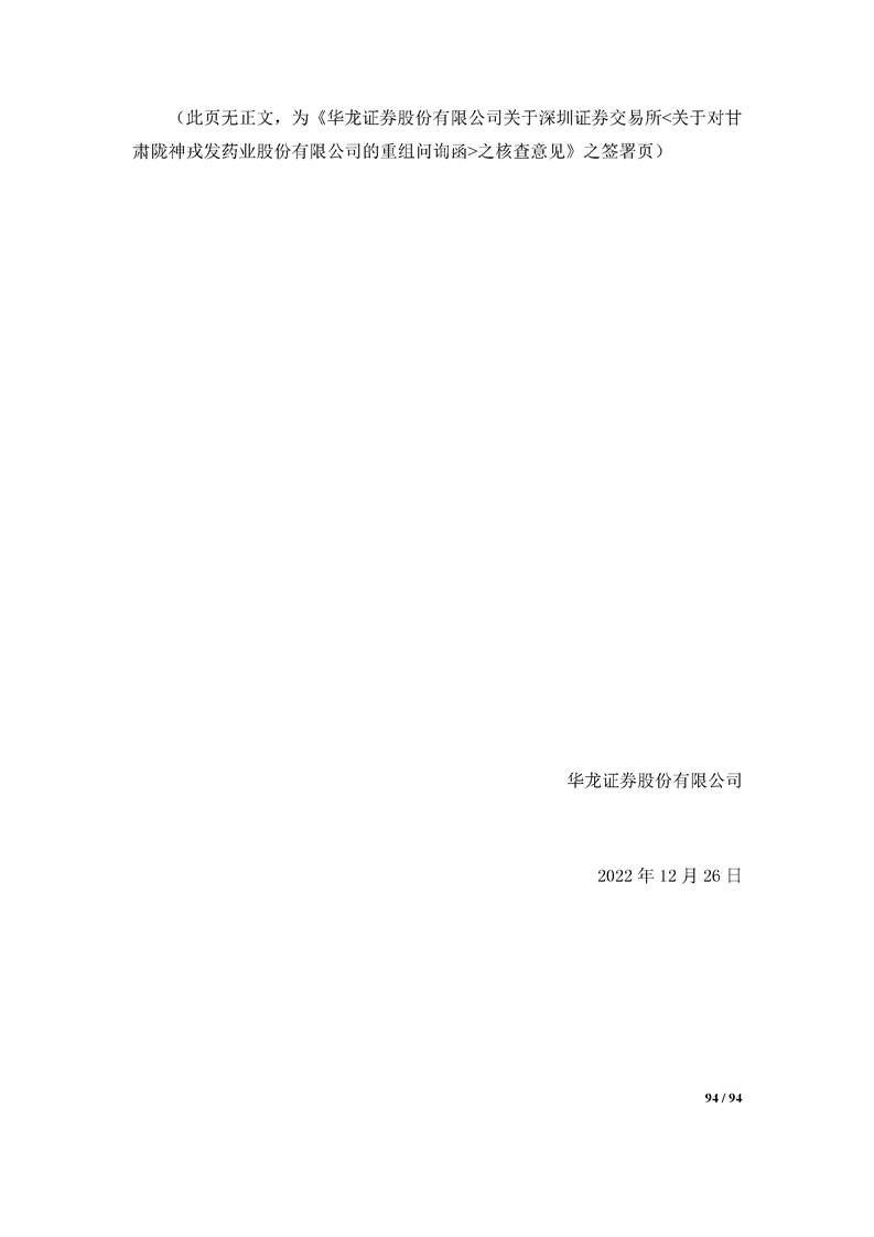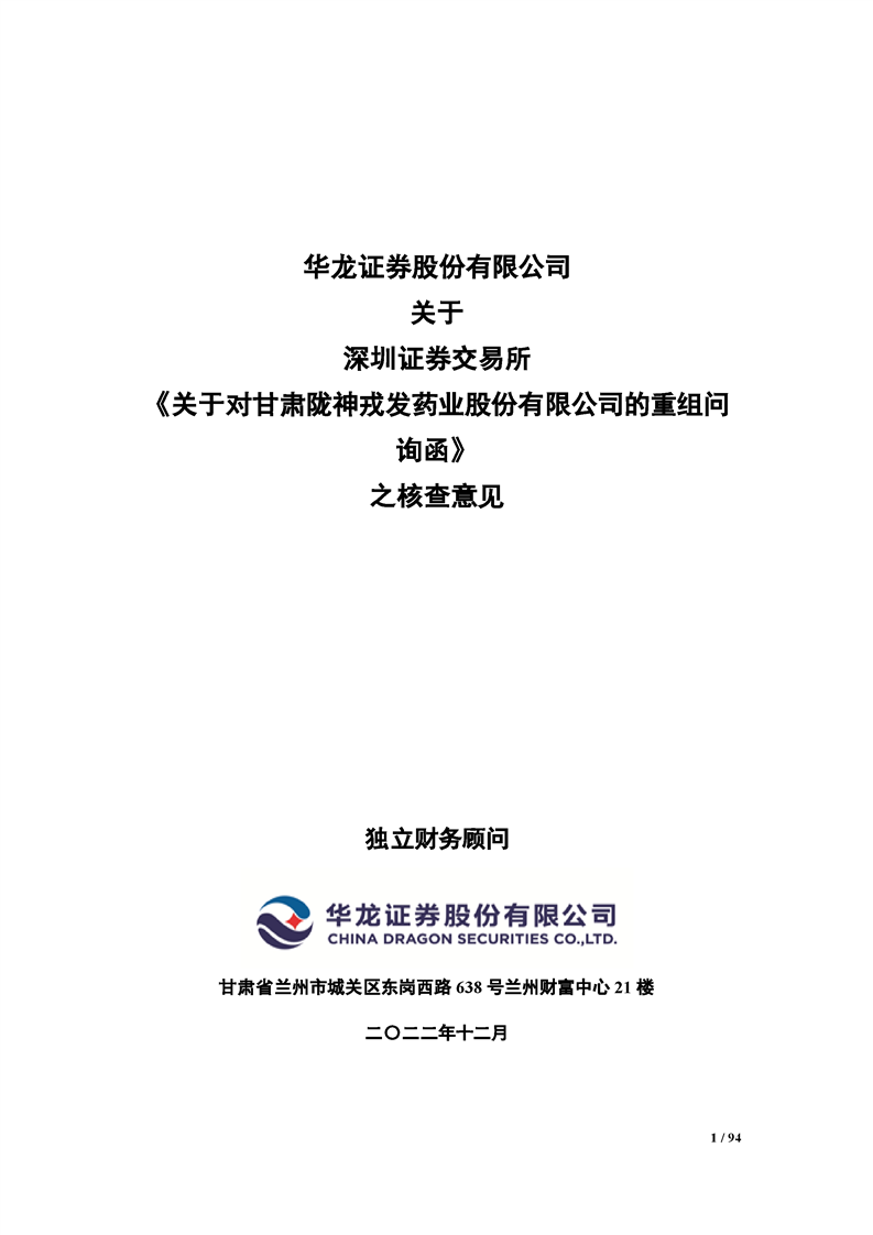 華龍證券股份有限公司關(guān)于深圳證券交易所《關(guān)于對(duì)甘肅隴神戎發(fā)藥業(yè)股份有限公司的重組問詢函》之核查意見