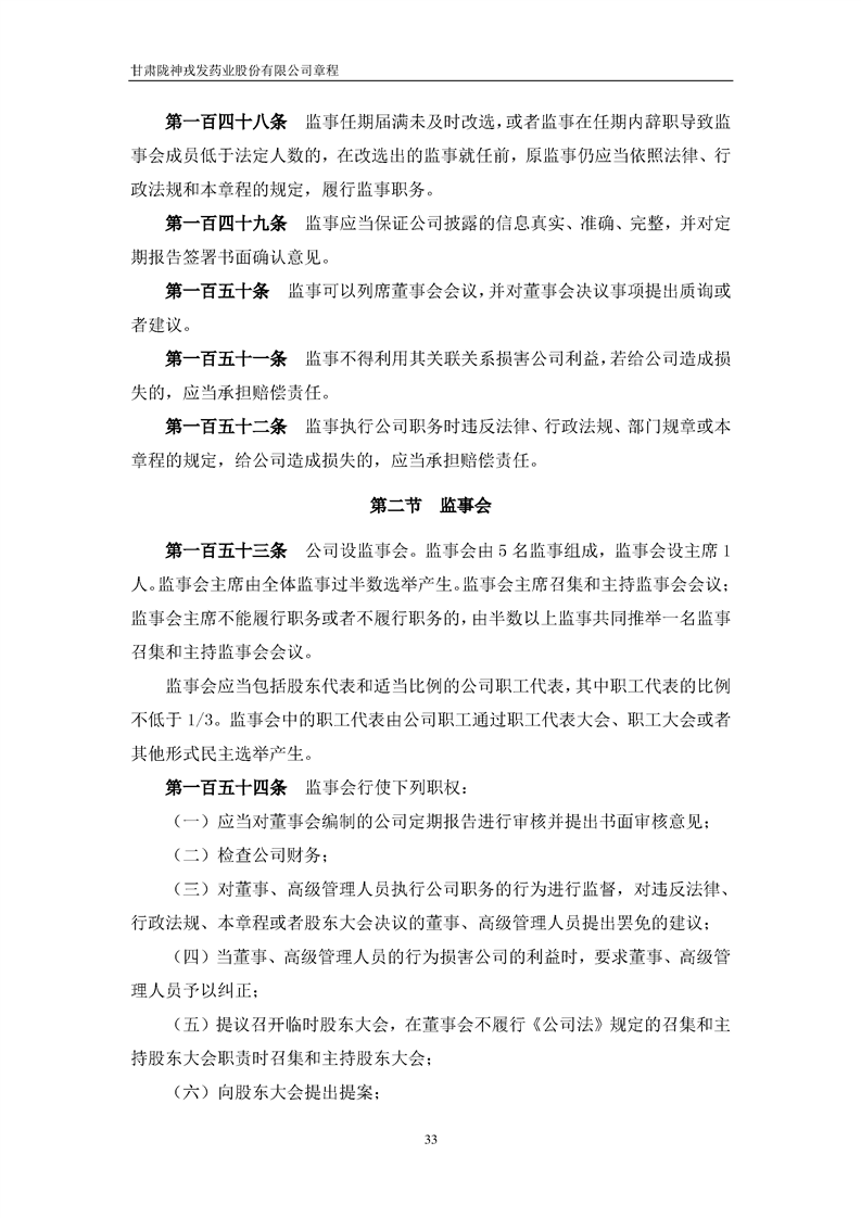 甘肅隴神戎發(fā)藥業(yè)股份有限公司章程(2022年4月)