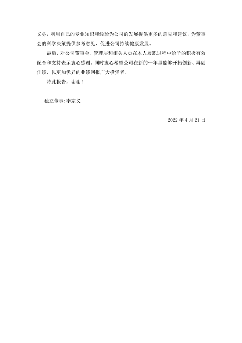 2021年獨立董事述職報告(李宗義)