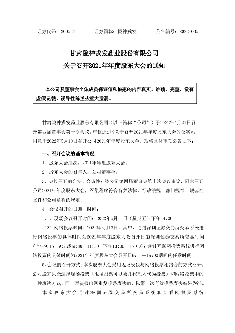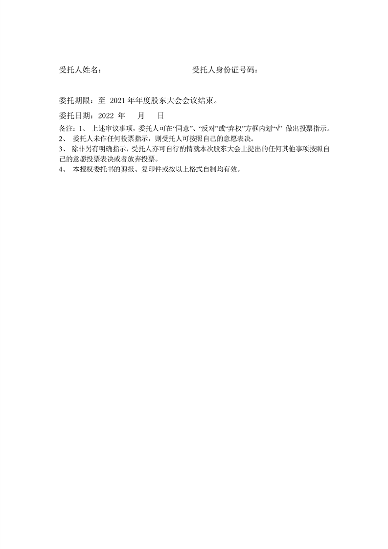 關(guān)于召開(kāi)2021年年度股東大會(huì)的通知