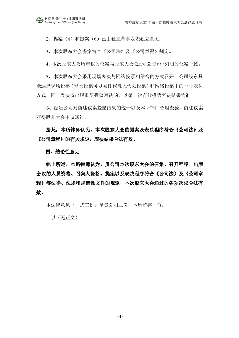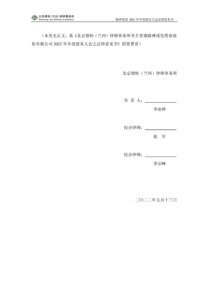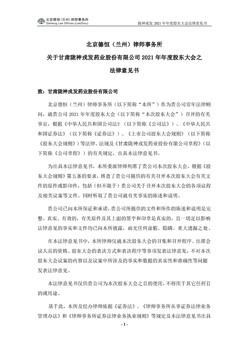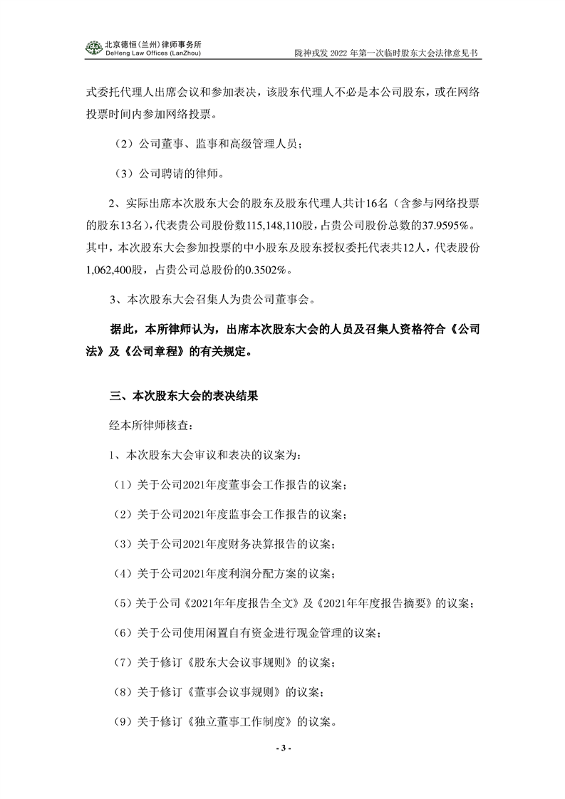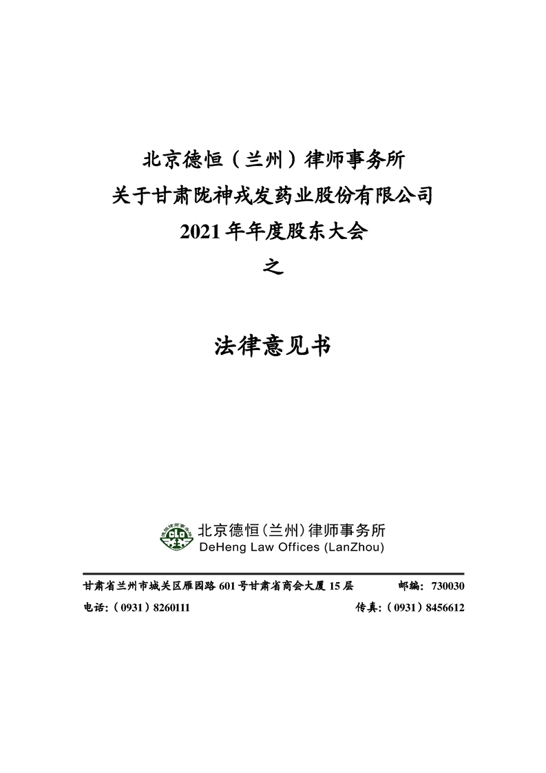 隴神戎發(fā)2021年年度股東大會法律意見書
