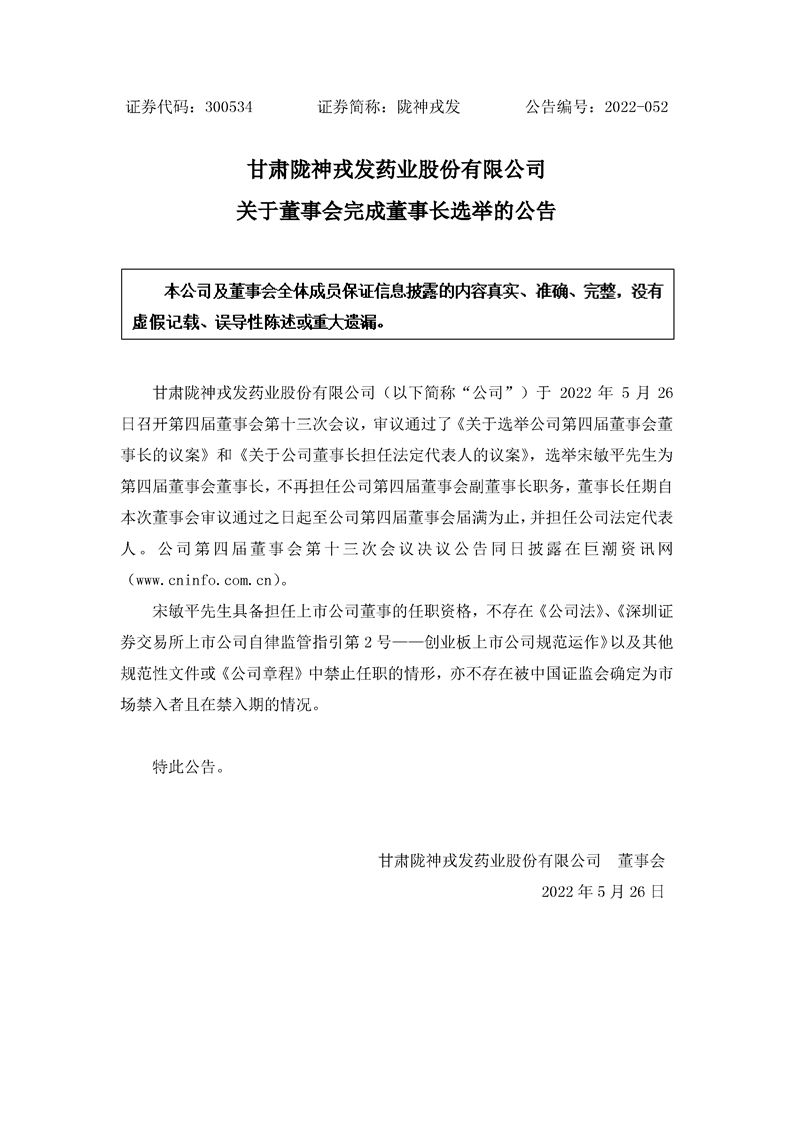 關(guān)于董事會完成董事長選舉的公告