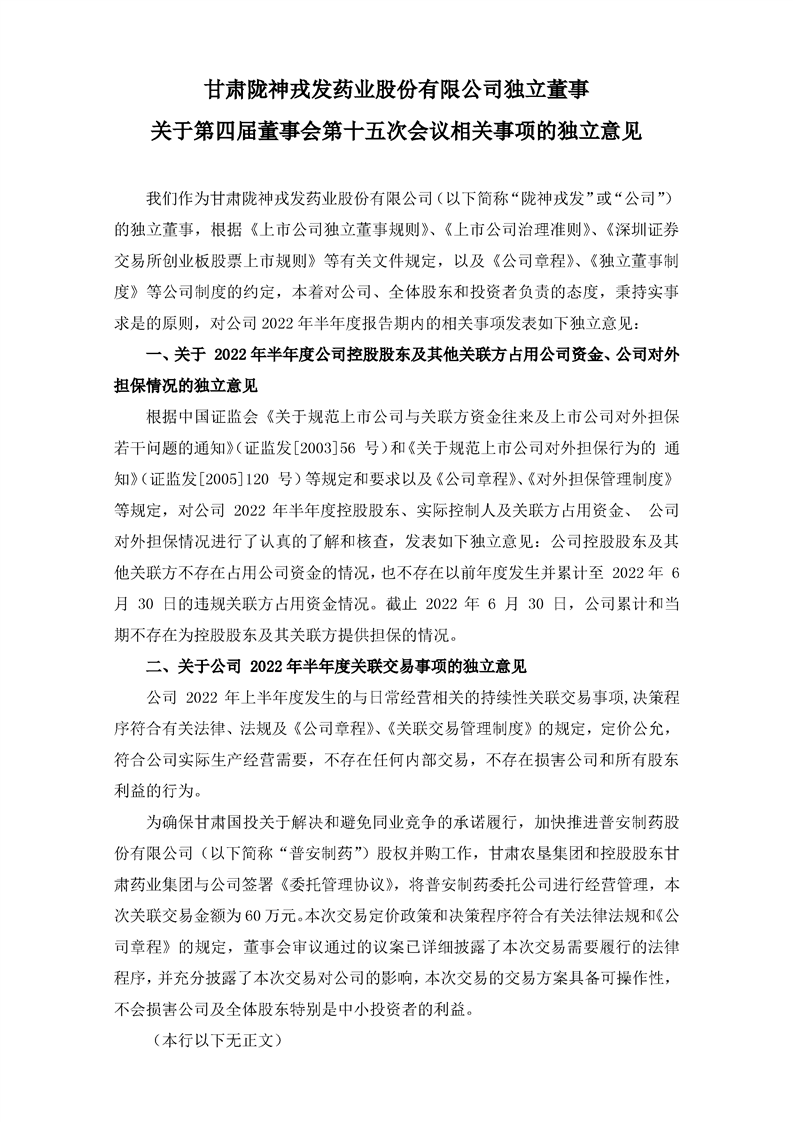 獨立董事關于第四屆董事會第十五次會議相關事項的獨立意見