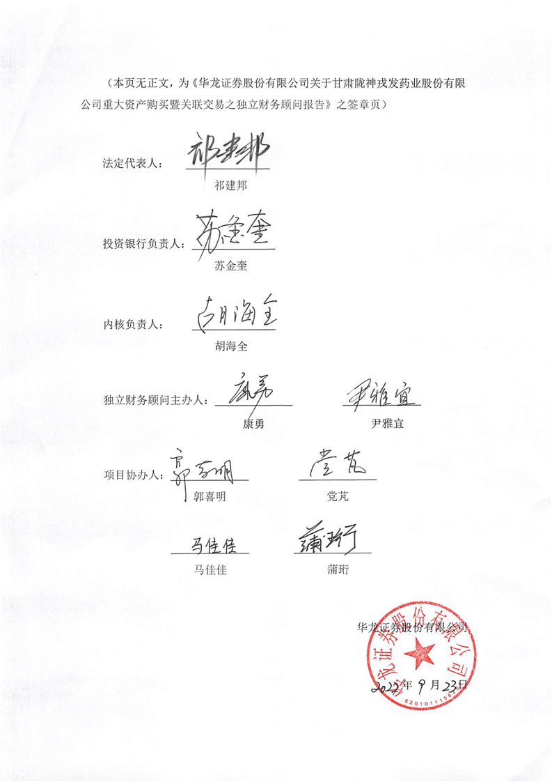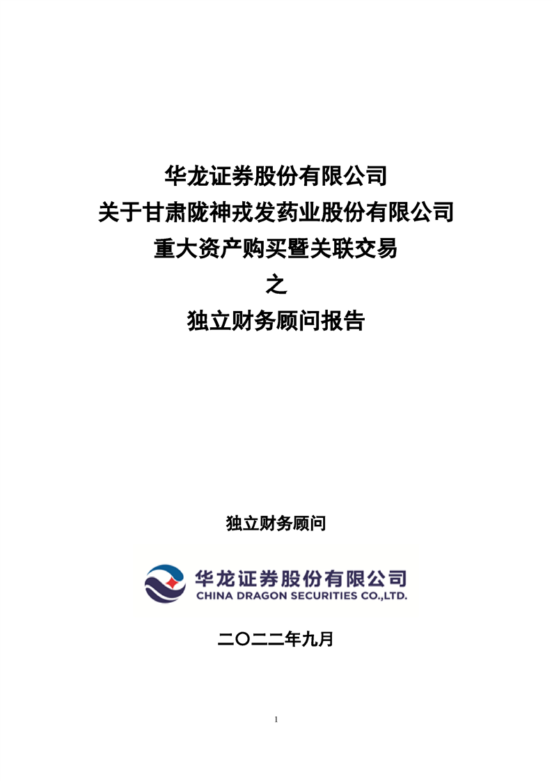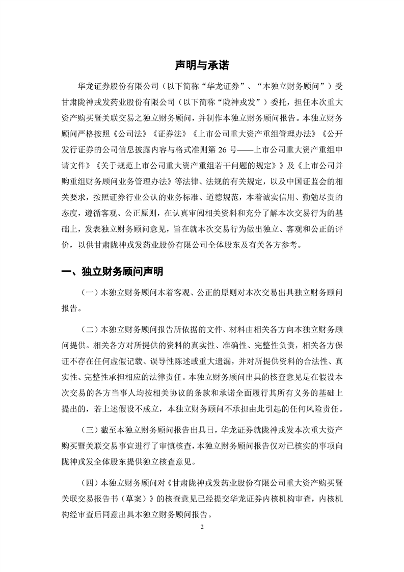 隴神戎發:華龍證券股份有限公司關于甘肅隴神戎發藥業股份有限公司重大資產購買暨關聯交易之獨立財務顧問報告