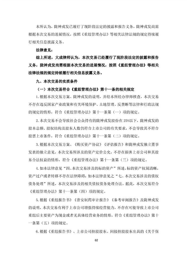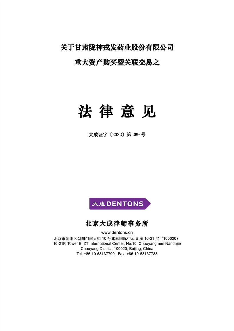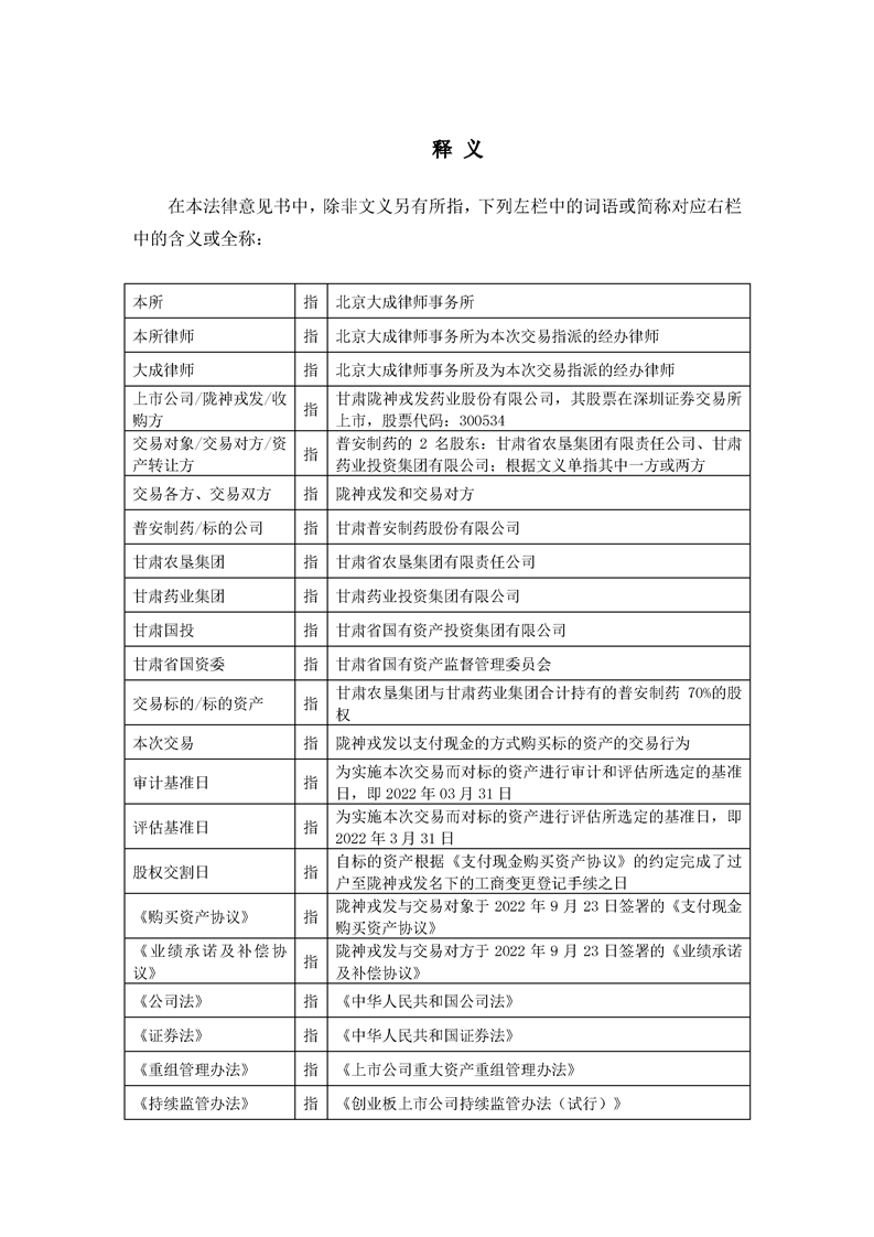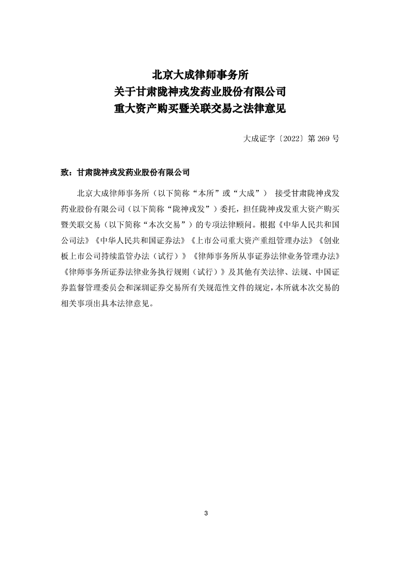 北京大成律師事務所關于隴神戎發重大資產購買暨關聯交易法律意見