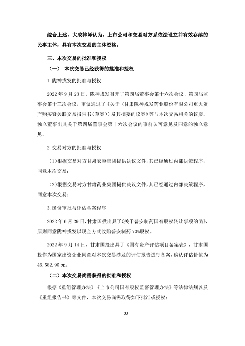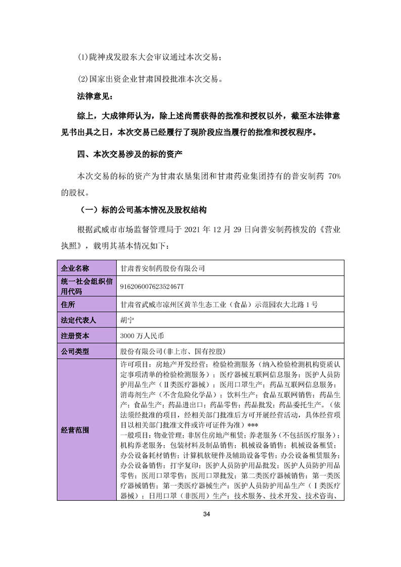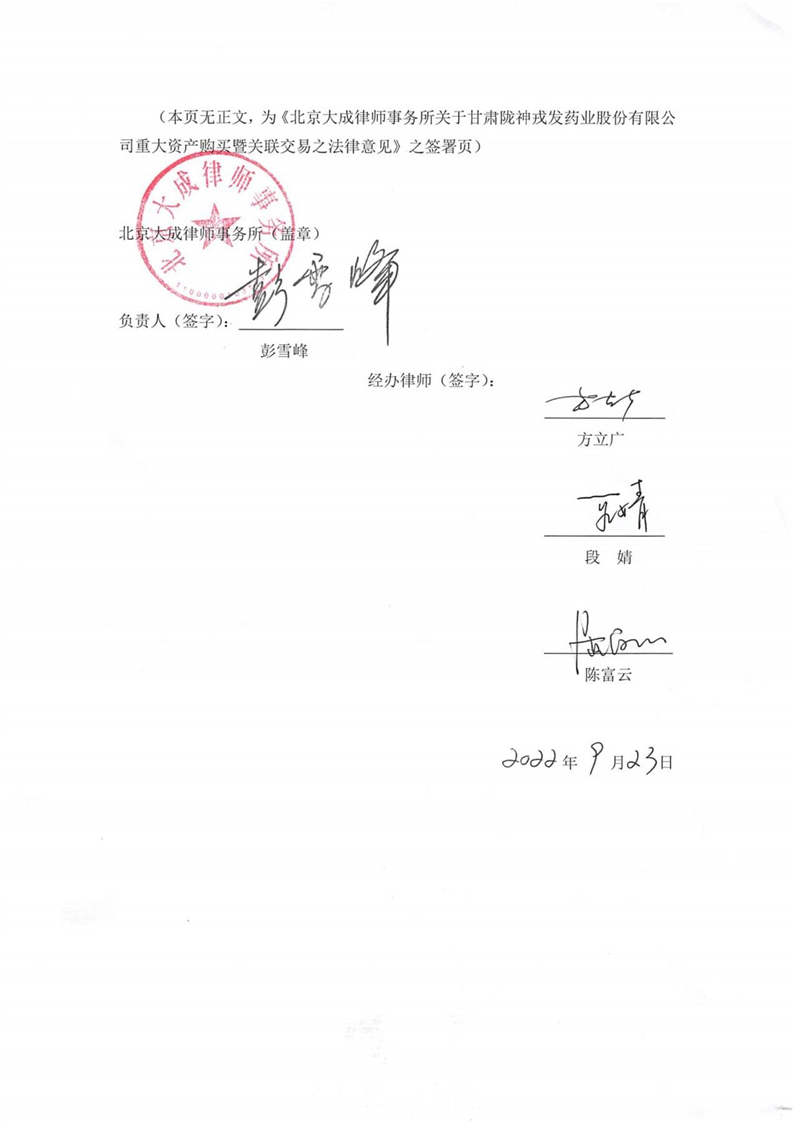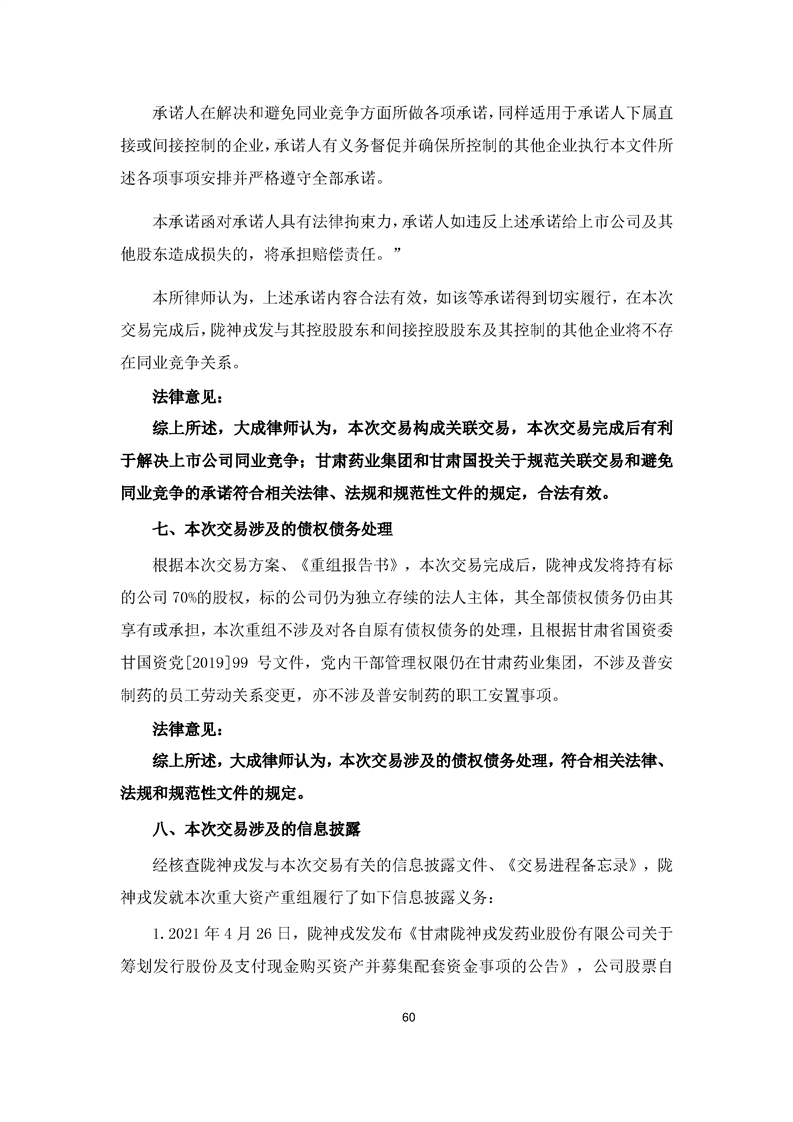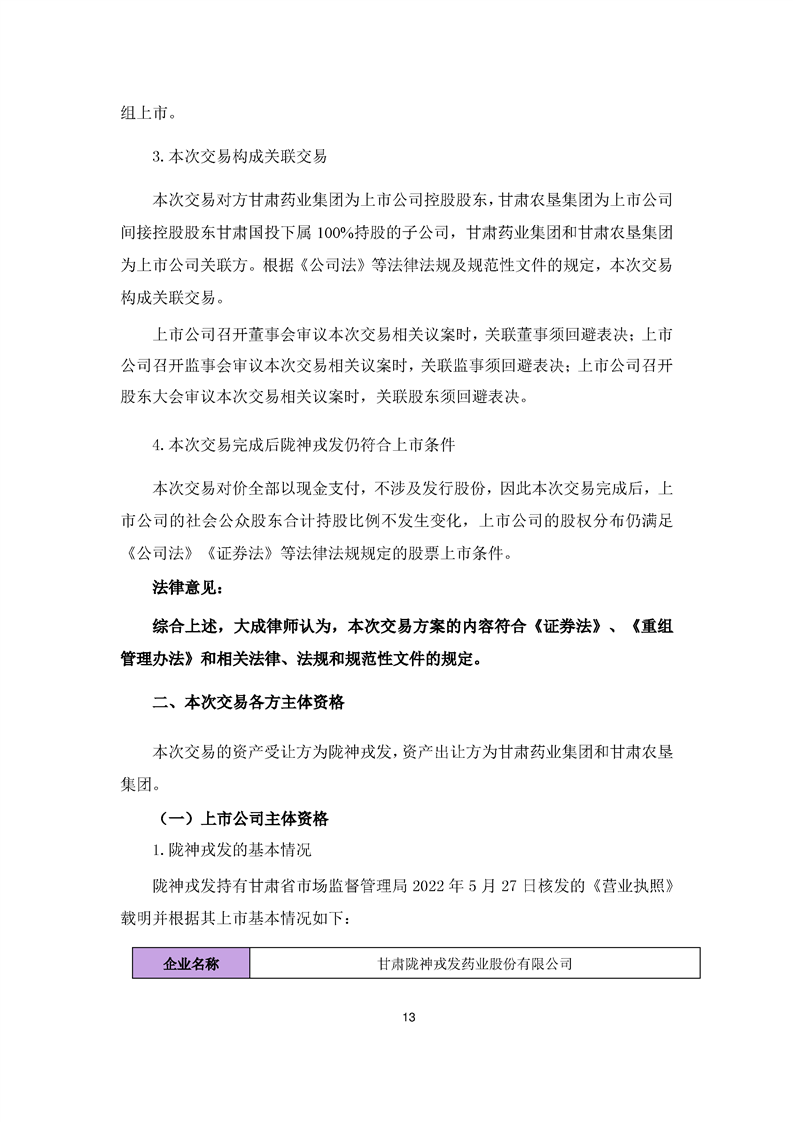北京大成律師事務所關于隴神戎發重大資產購買暨關聯交易法律意見
