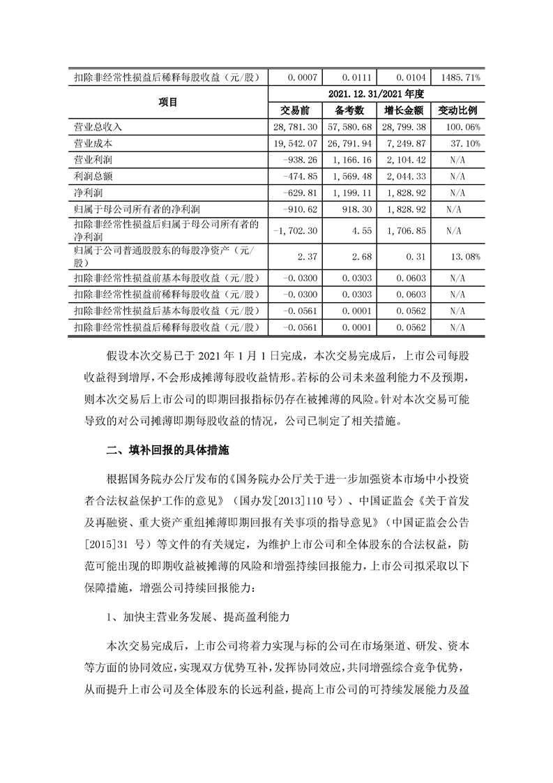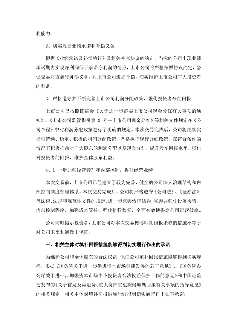 董事會關于本次交易攤薄上市公司即期回報填補措施的說明