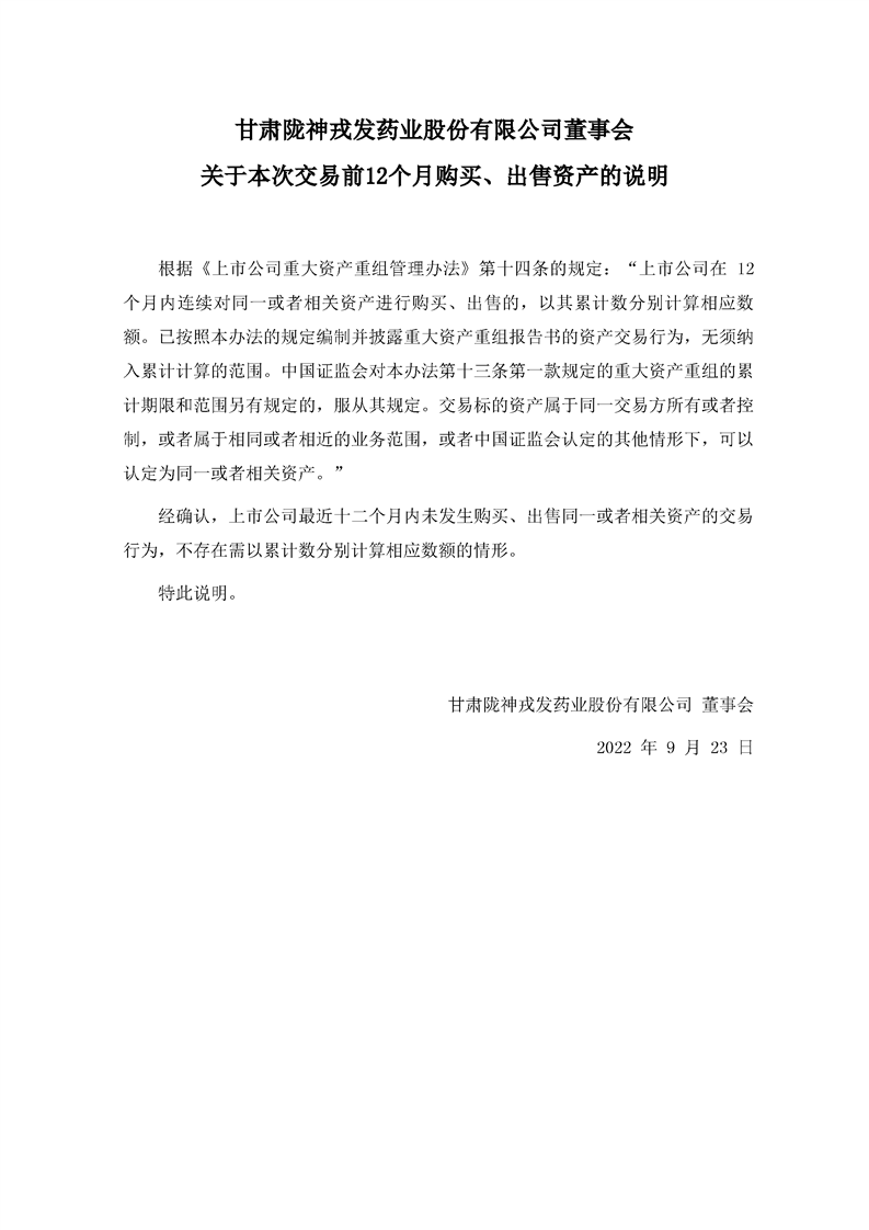 董事會關(guān)于本次交易前12個月購買、出售資產(chǎn)的說明
