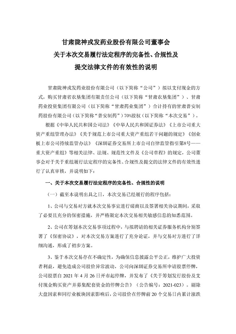 董事會關于本次交易履行法定程序的完備性、合規性及提交法律文件的有效性的說明