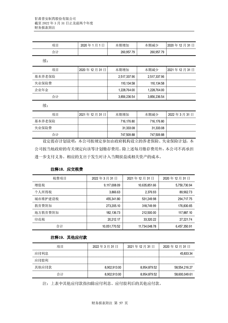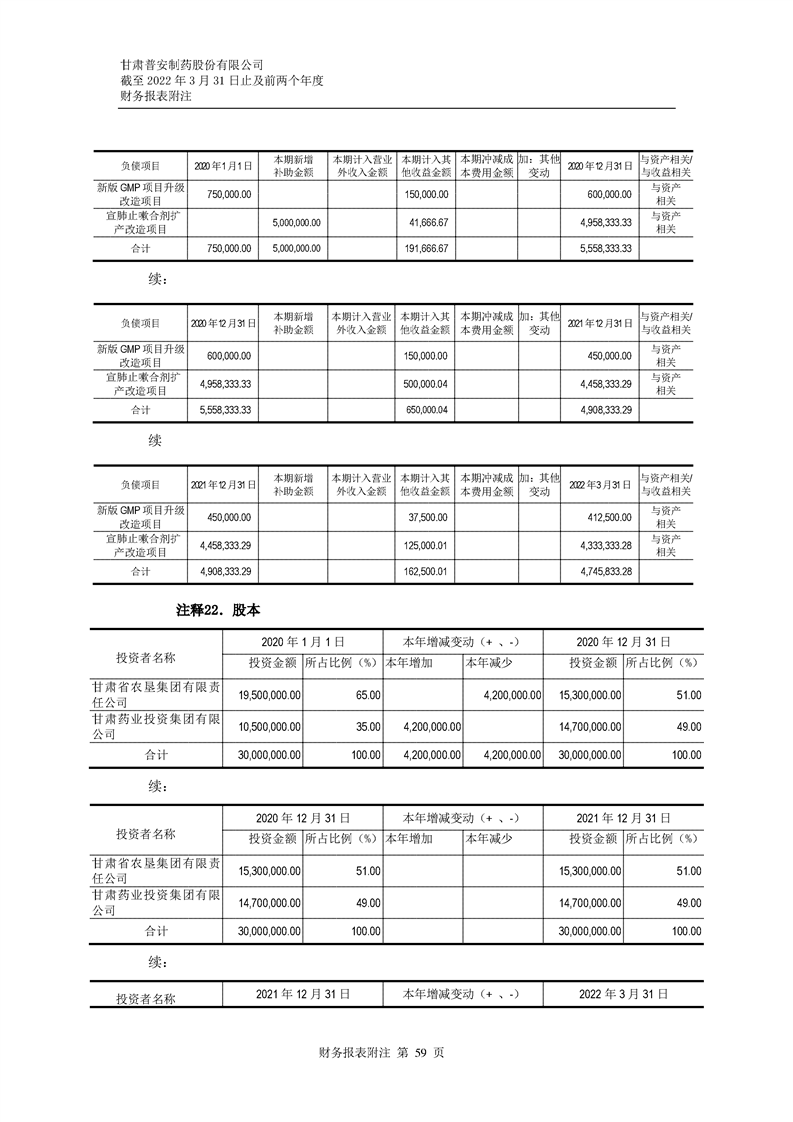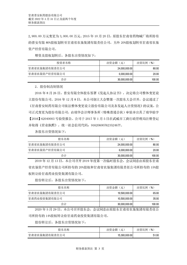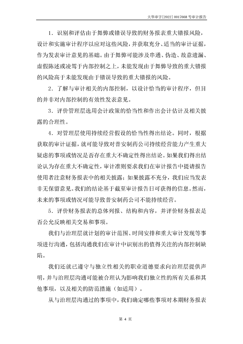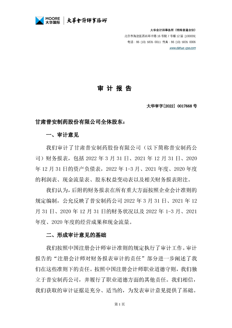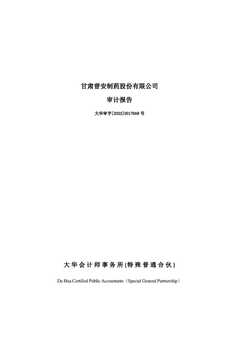 甘肅普安制藥股份有限公司審計報告-大華審字[2022]0017668號