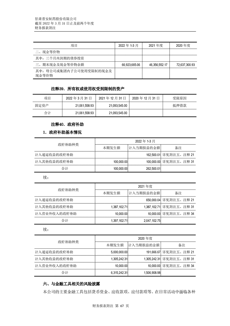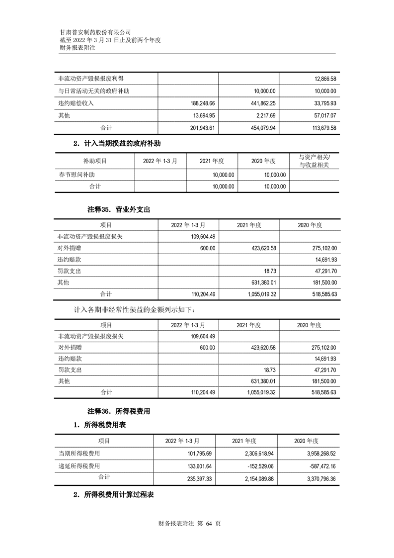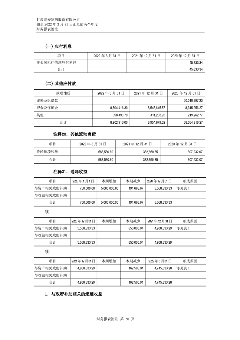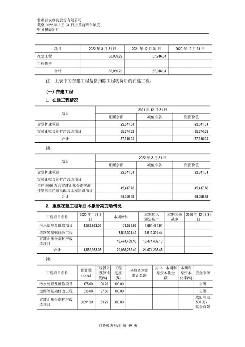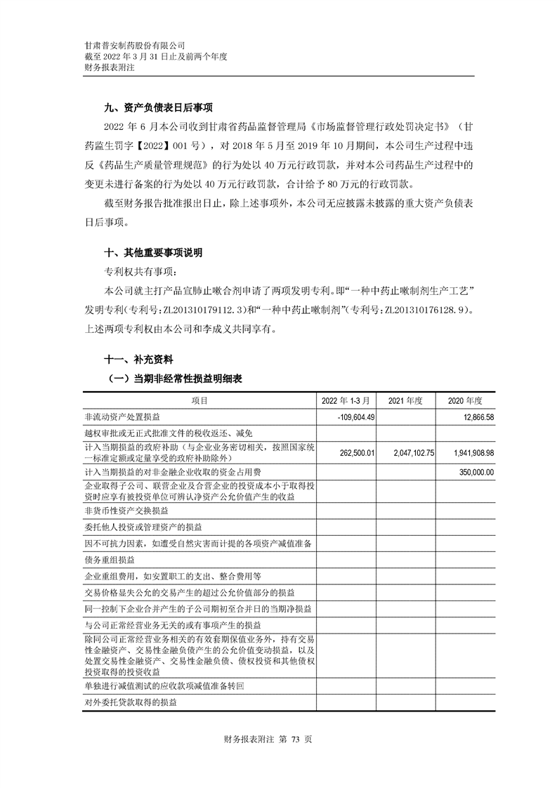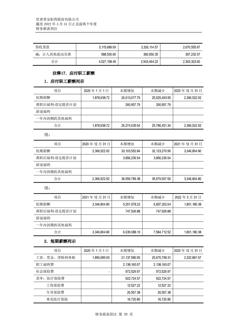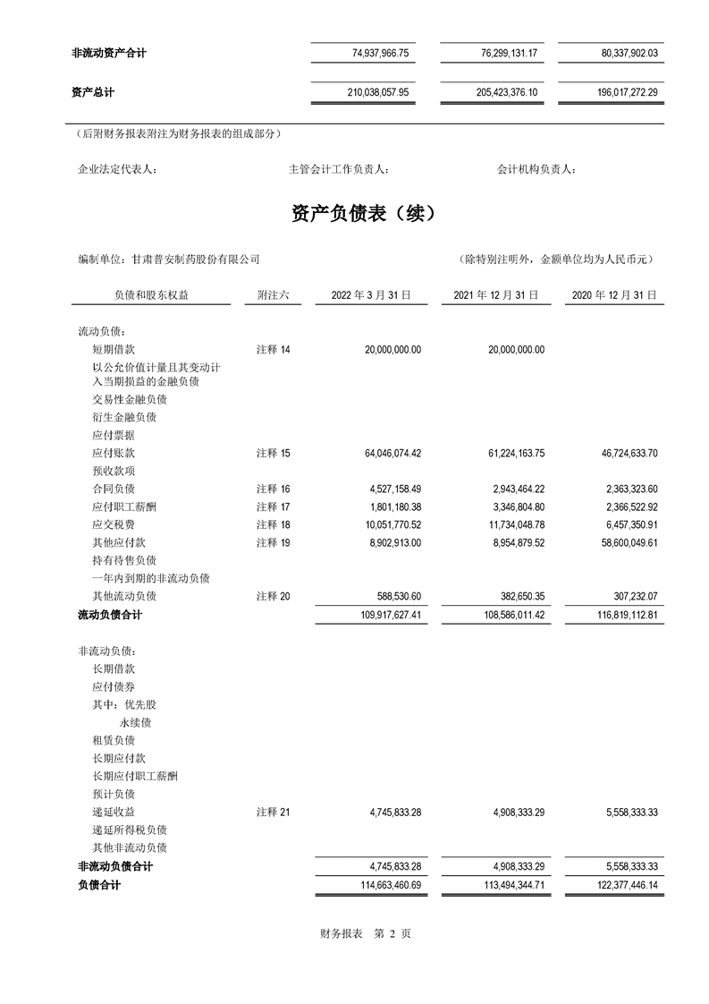 甘肅普安制藥股份有限公司審計報告-大華審字[2022]0017668號