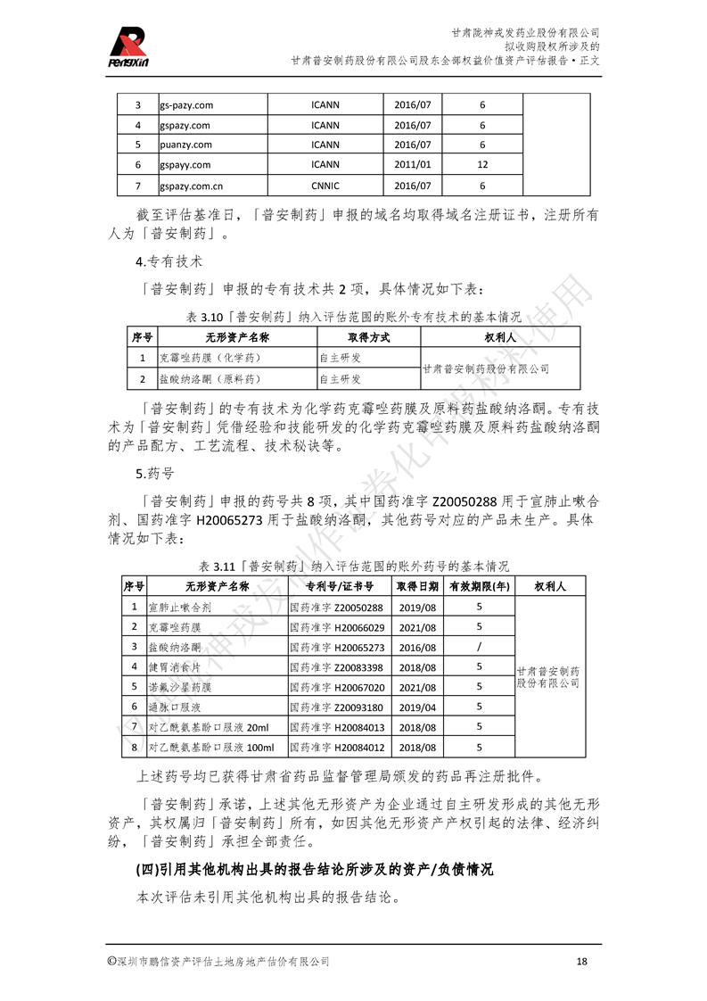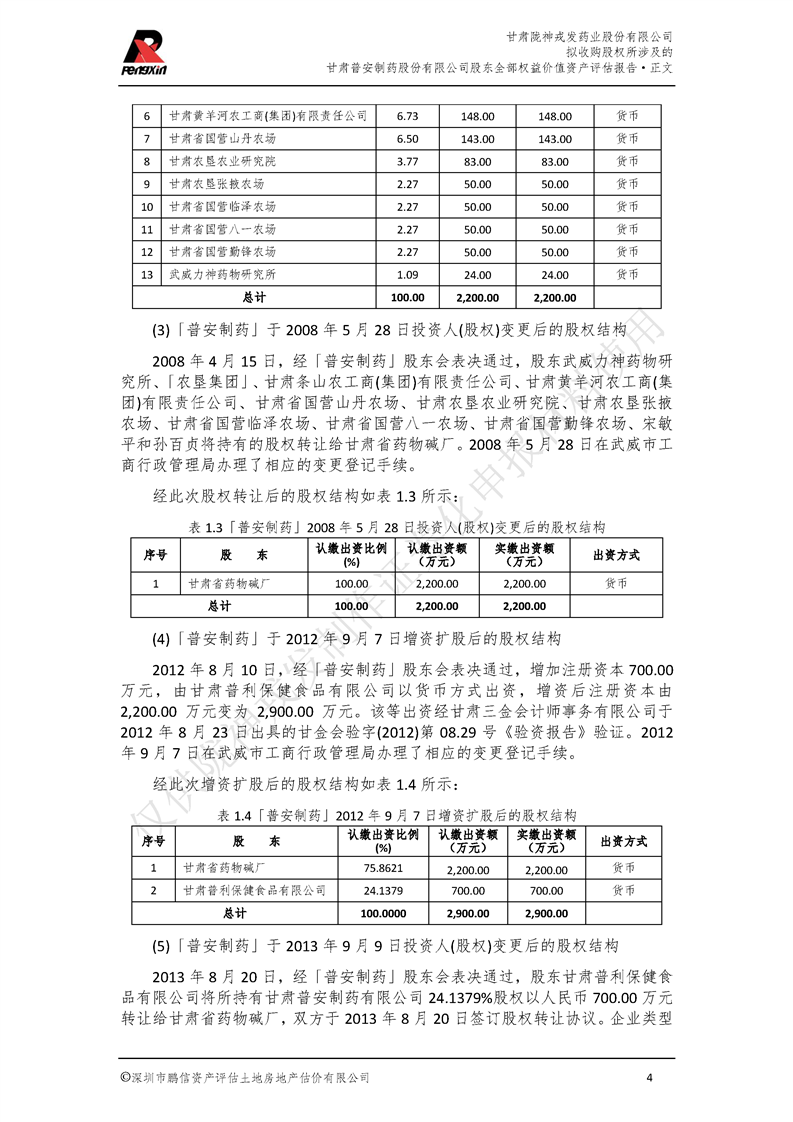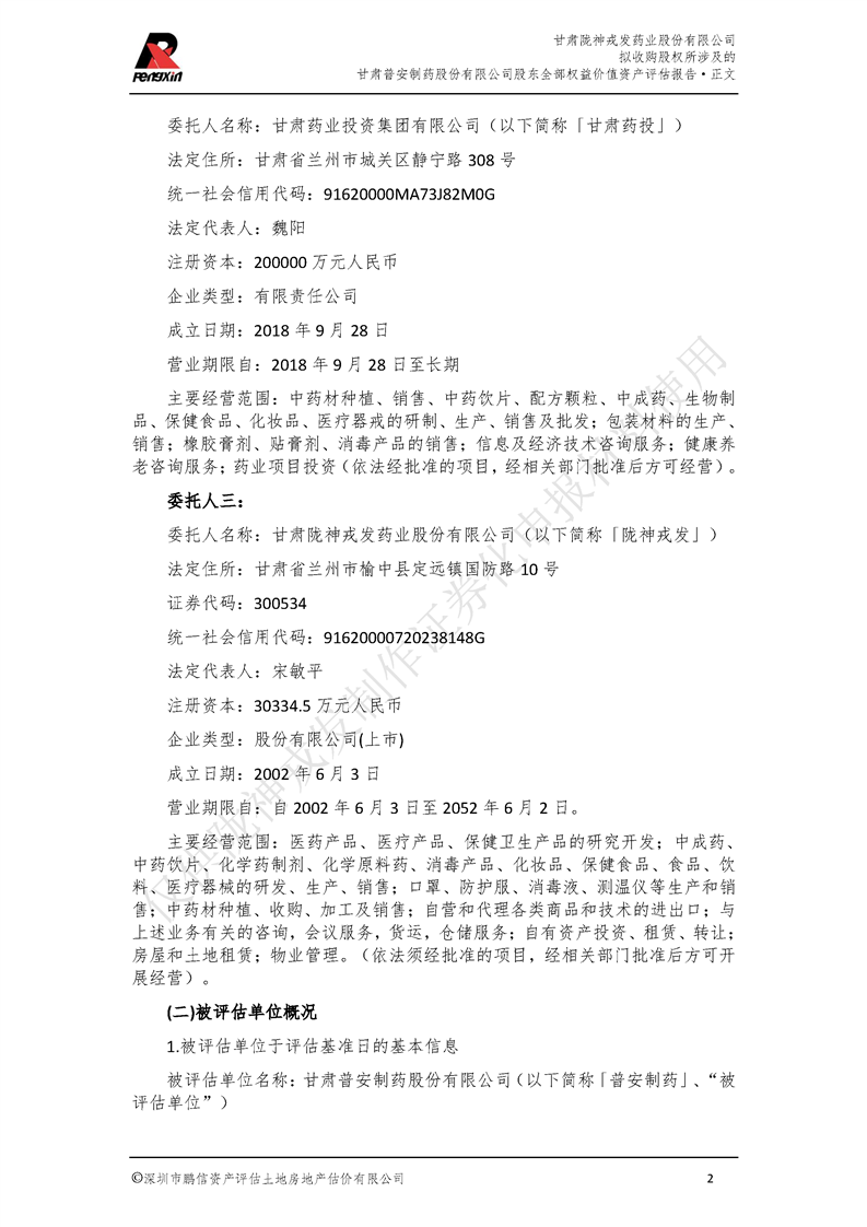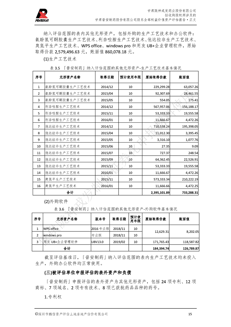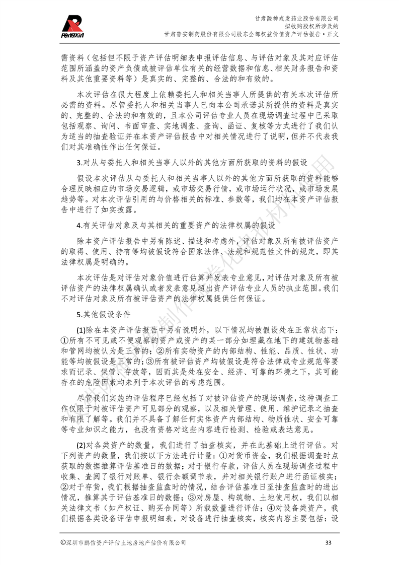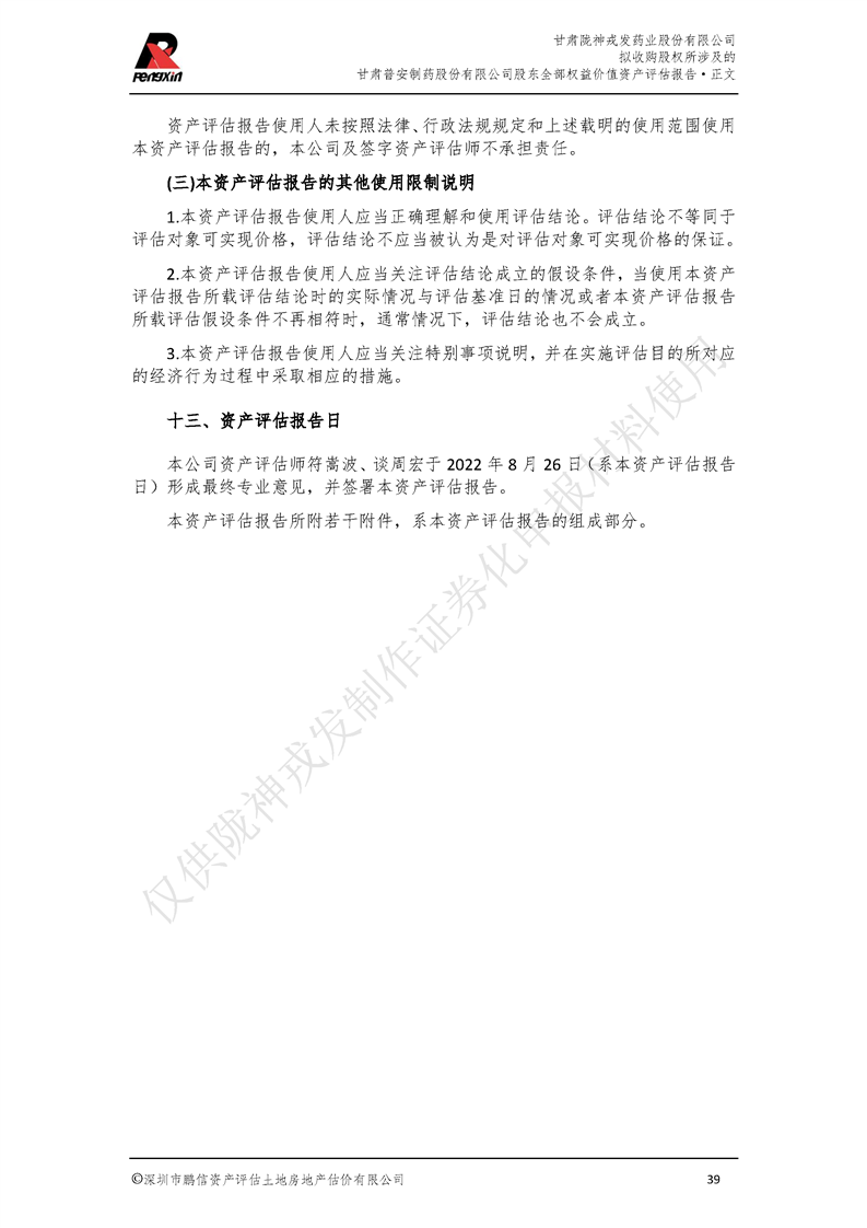 甘肅普安制藥股份有限公司全部權益價值資產評估報告-鵬信資評報字[2022]第S152號