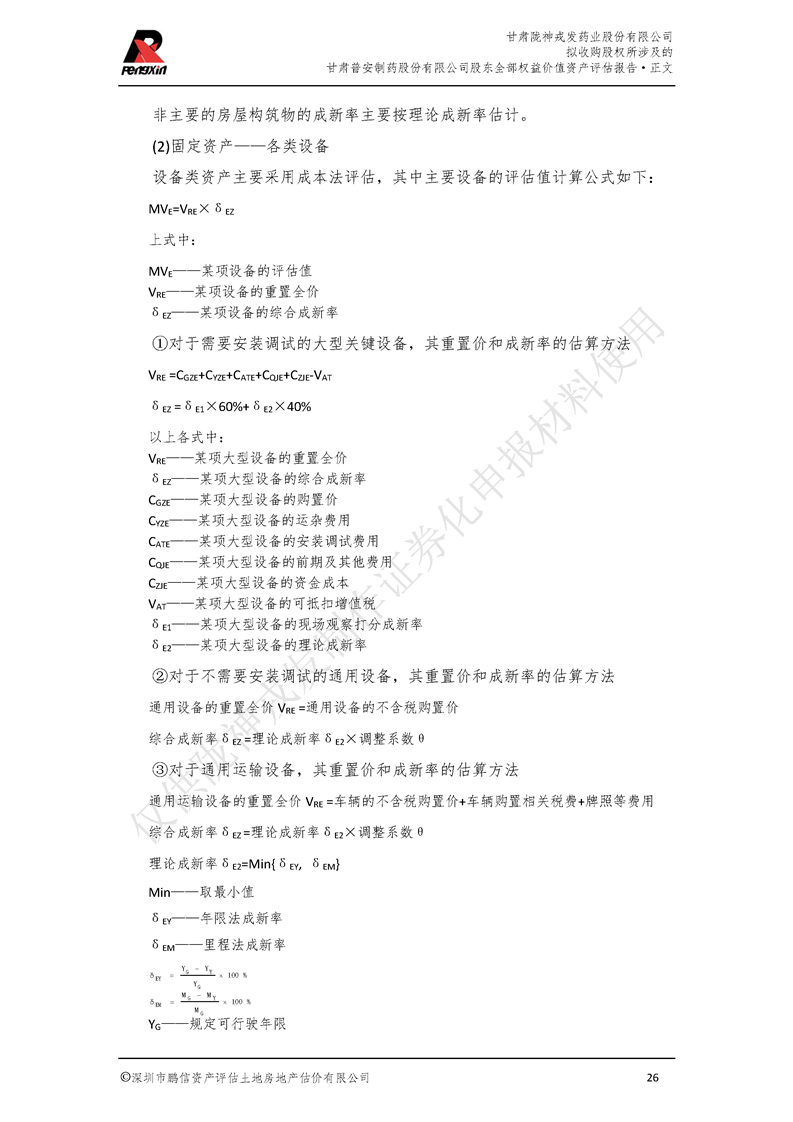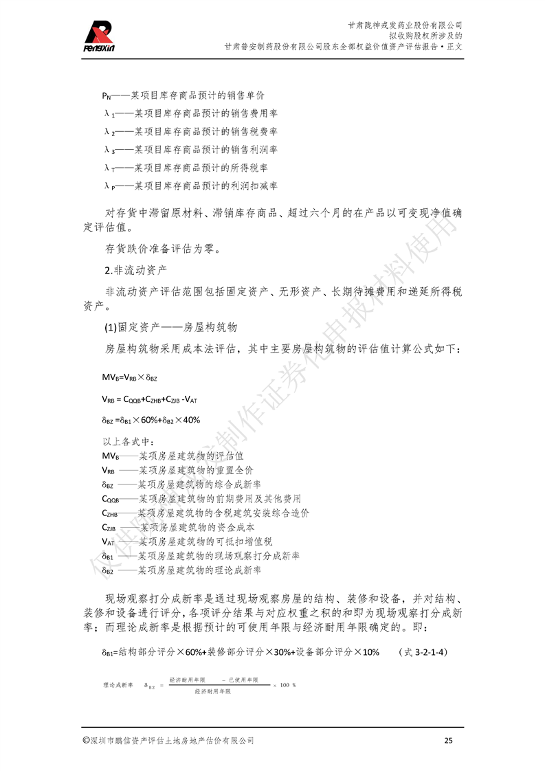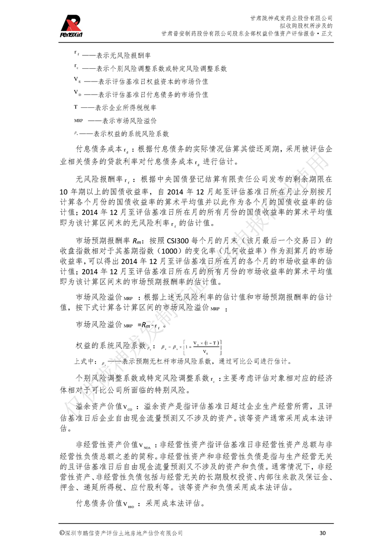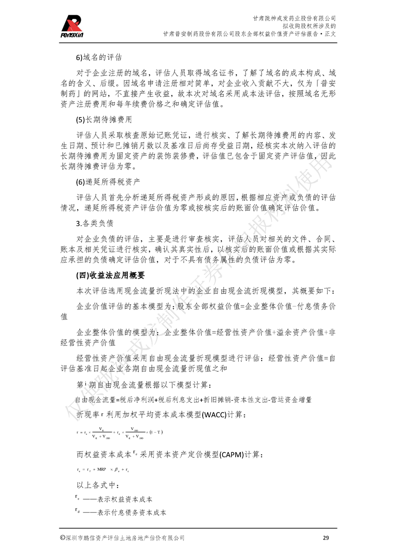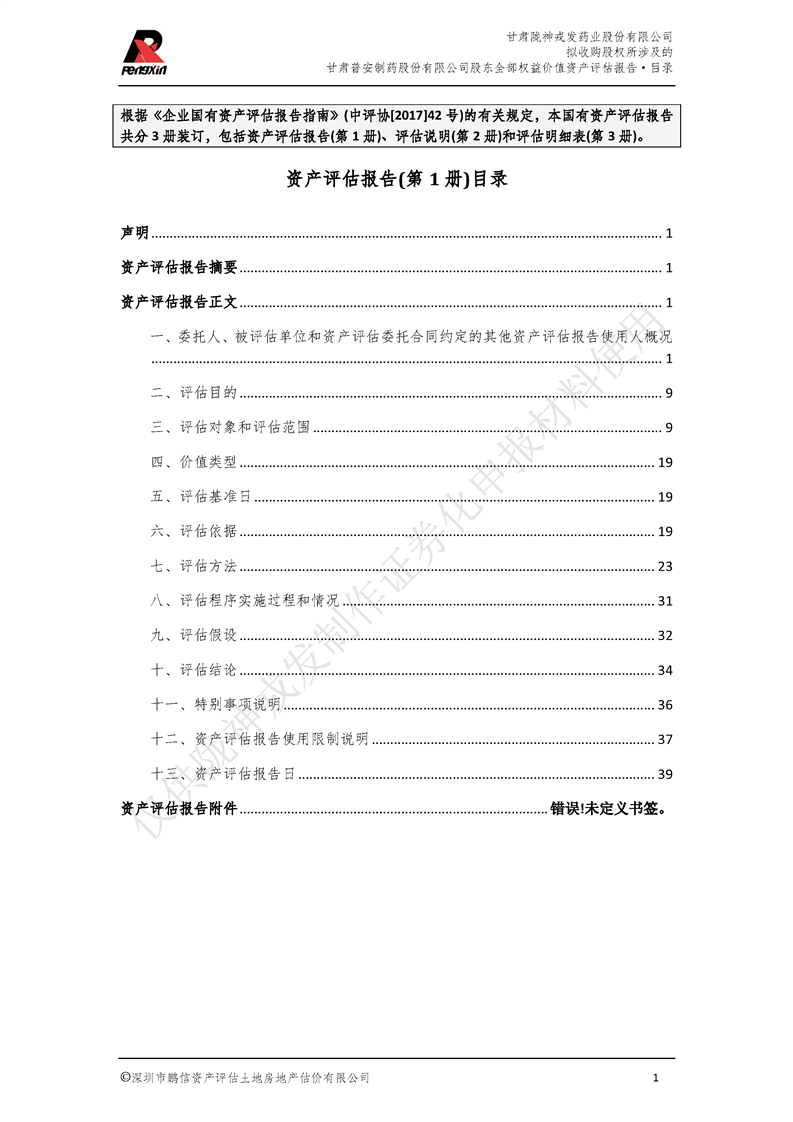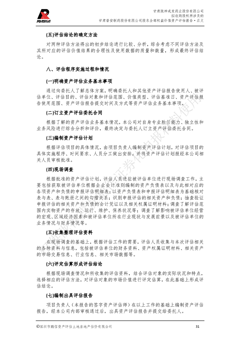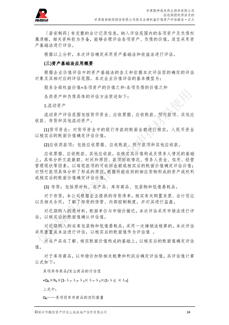 甘肅普安制藥股份有限公司全部權益價值資產評估報告-鵬信資評報字[2022]第S152號