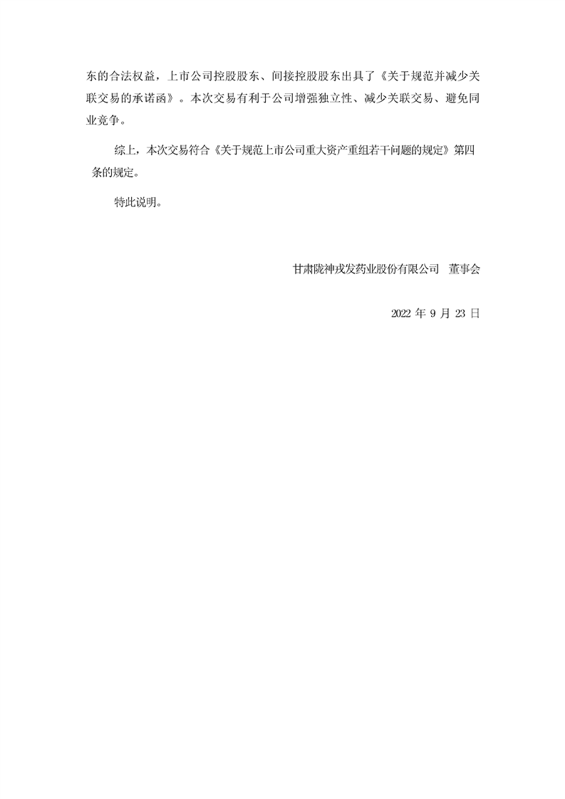 董事會關于本次交易符合《關于規范上市公司重大資產重組組若干問題的規定》第四條規定的說明