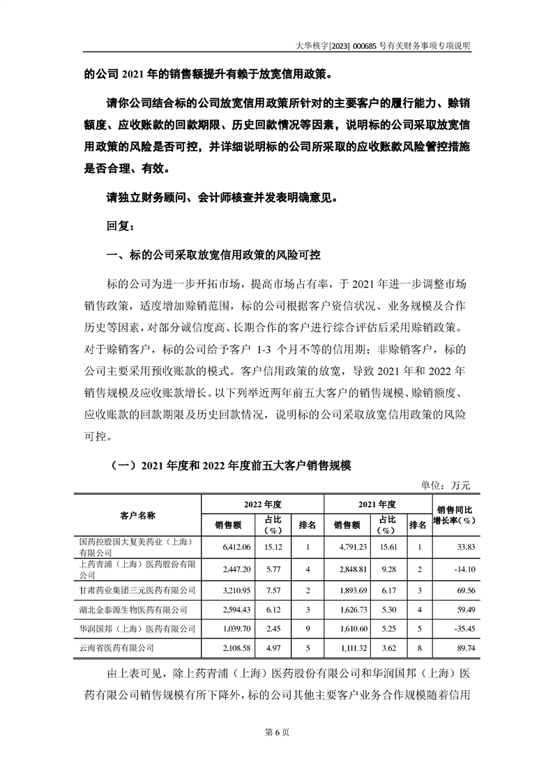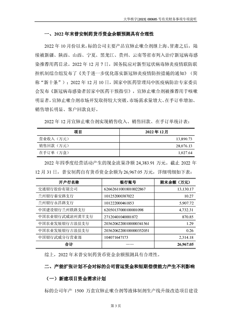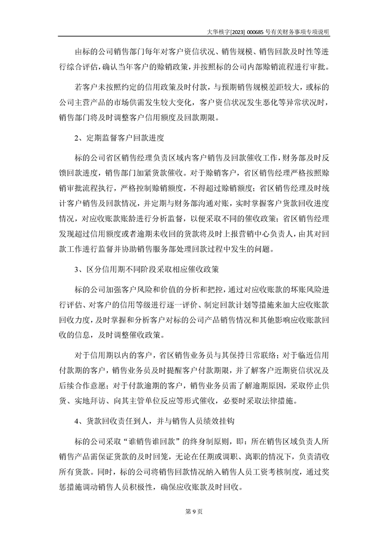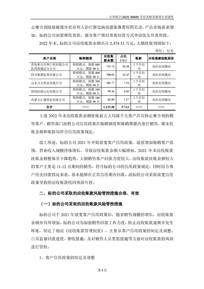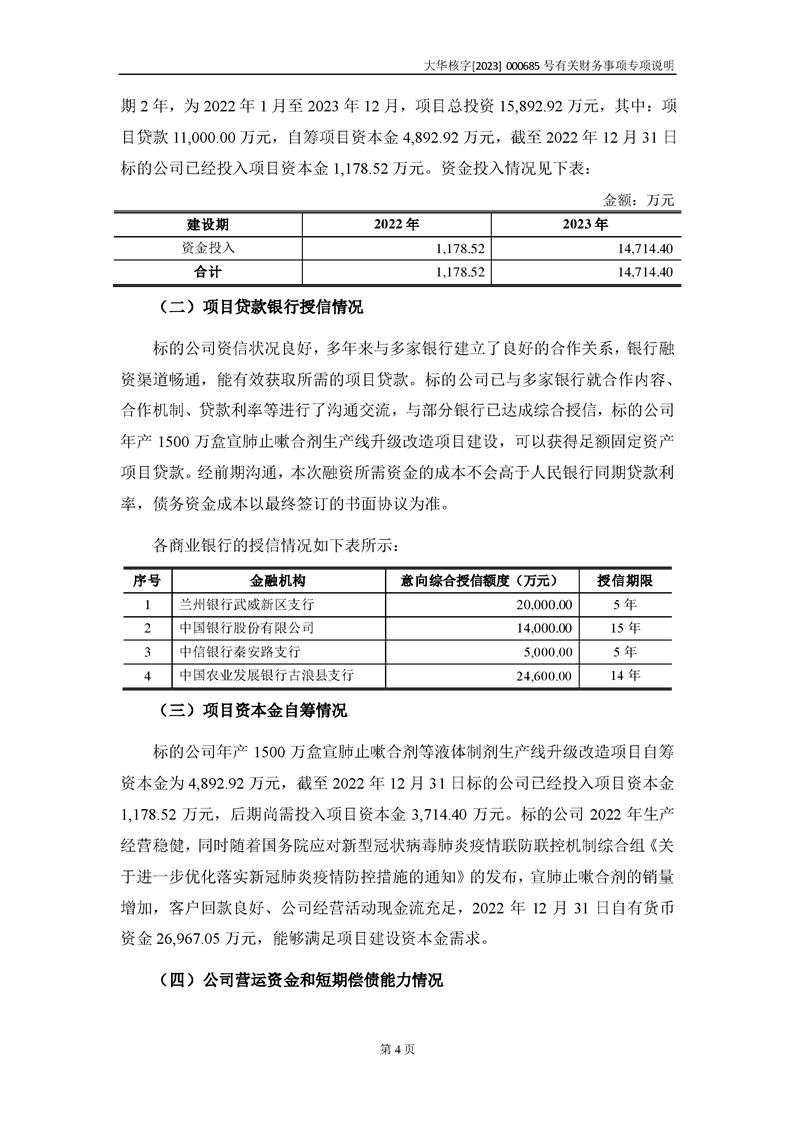 大華會計師事務所關于深圳證券交易所對甘肅隴神戎發藥業股份有限公司的重組問詢函中有關財務事項的專項說明-大華核字[2023]000685號