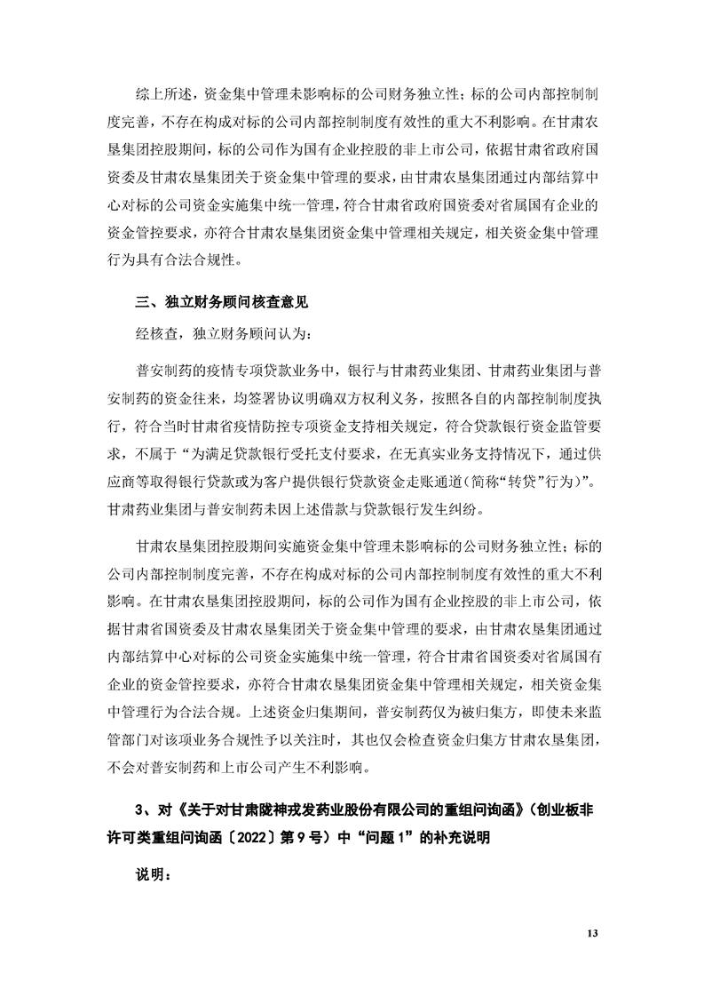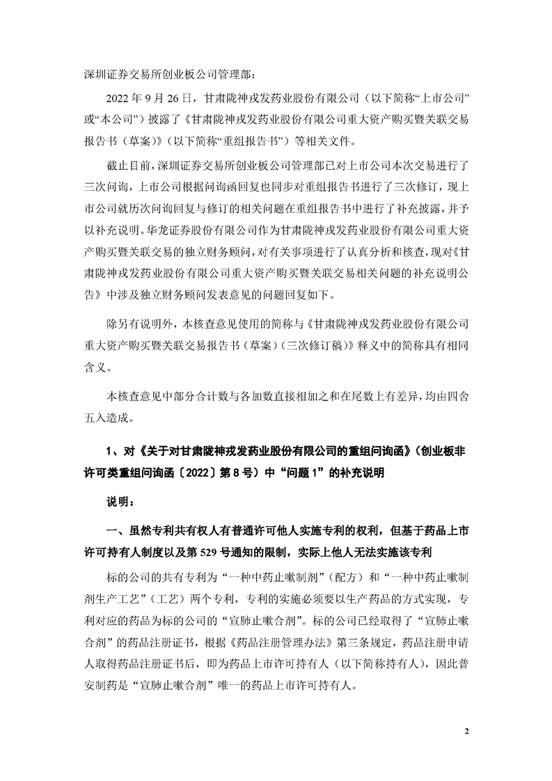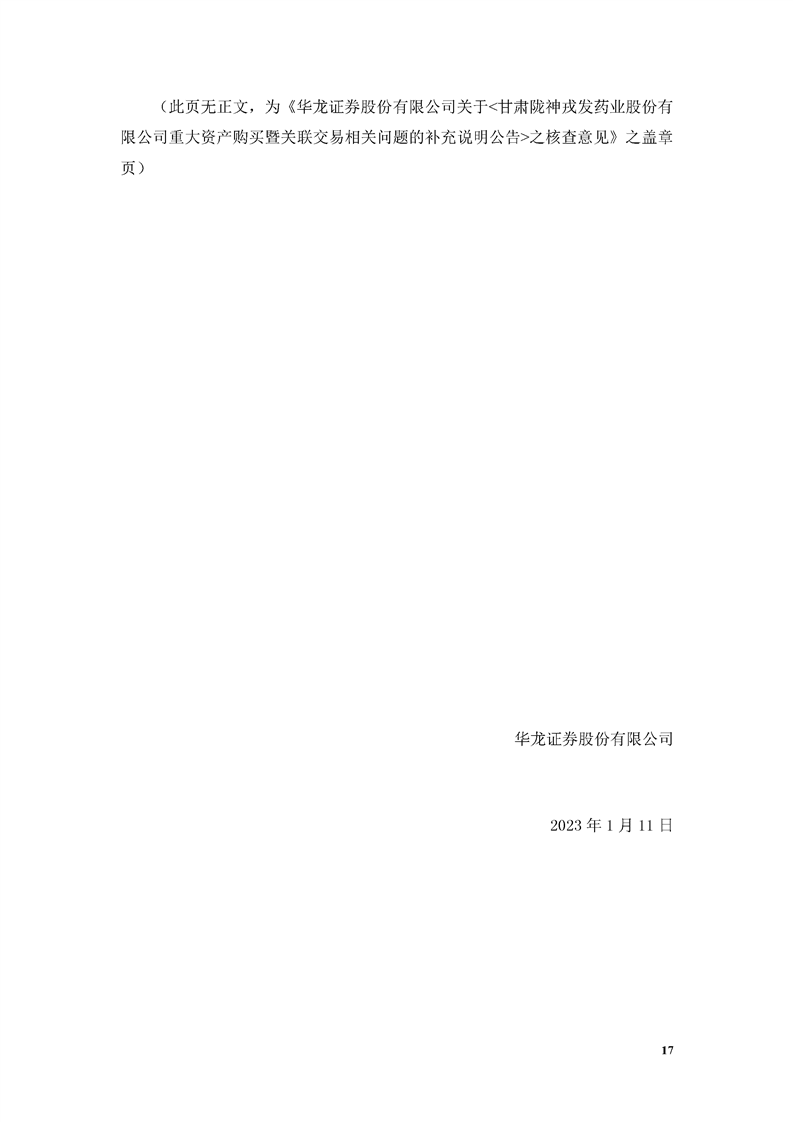 華龍證券股份有限公司關(guān)于《甘肅隴神戎發(fā)藥業(yè)股份有限公司重大資產(chǎn)購買暨關(guān)聯(lián)交易相關(guān)問題的補(bǔ)充說明公告》之核查意見