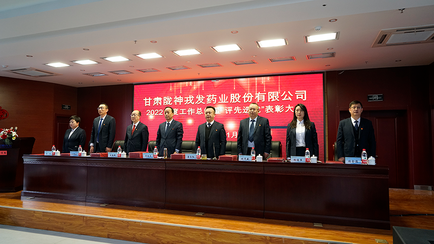1月18日下午,隴神戎發2022年度工作總結暨評先選優表彰大會在公司八樓會議廳隆重舉行。公司領導班子、各部門及神康公司、新絲路公司、三元醫藥干部職工參加會議。會議在莊嚴的國歌聲中拉開序幕。