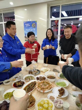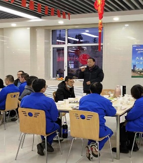 2023年1月21日晚,正值除夕之夜,公司黨委書記、董事長宋敏平及部分領導班子成員在職工食堂,與堅守在崗位的人員共進年夜飯、共敘濃濃情,共同迎接新春佳節的到來。董事長宋敏平首先代表公司領導班子向春節期間仍然堅守在崗位的一線人員致以節日的問候,并送上春節美好的祝福和新一年的展望;總經理康永紅感謝大家一年來辛苦的付出和努力。天氣很冷,話語很暖;暖意濃濃,蕩漾心間。宴席間,大家有說有笑、暢所欲言、相互祝福、同品佳肴,歡樂和喜悅洋溢在所有人的臉上。