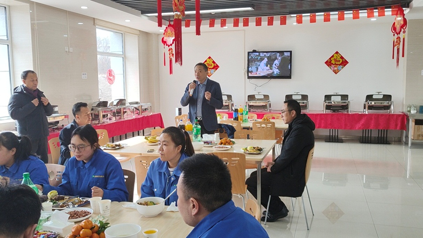 走出生產現場,魏陽董事長又專程來到職工食堂,現場查看春節期間生產職工的餐食供應情況,并專門向就餐職工和后勤保障職工拜年和送上深深的祝福。在場職工深受鼓舞,現場不時響起熱烈掌聲,紛紛表示在未來的工作中勇往直前,再立新功,為企業發展貢獻力量。