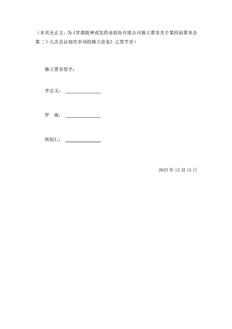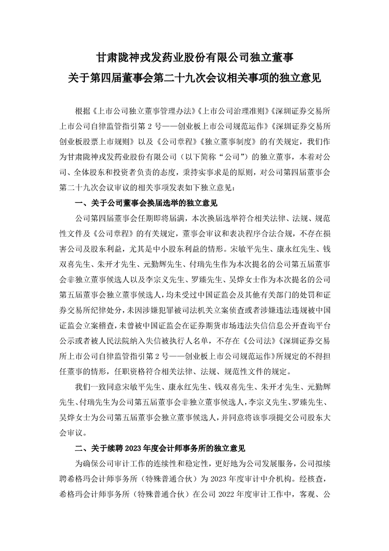 獨立董事關于第四屆董事會第二十九次會議相關事項的獨立意見