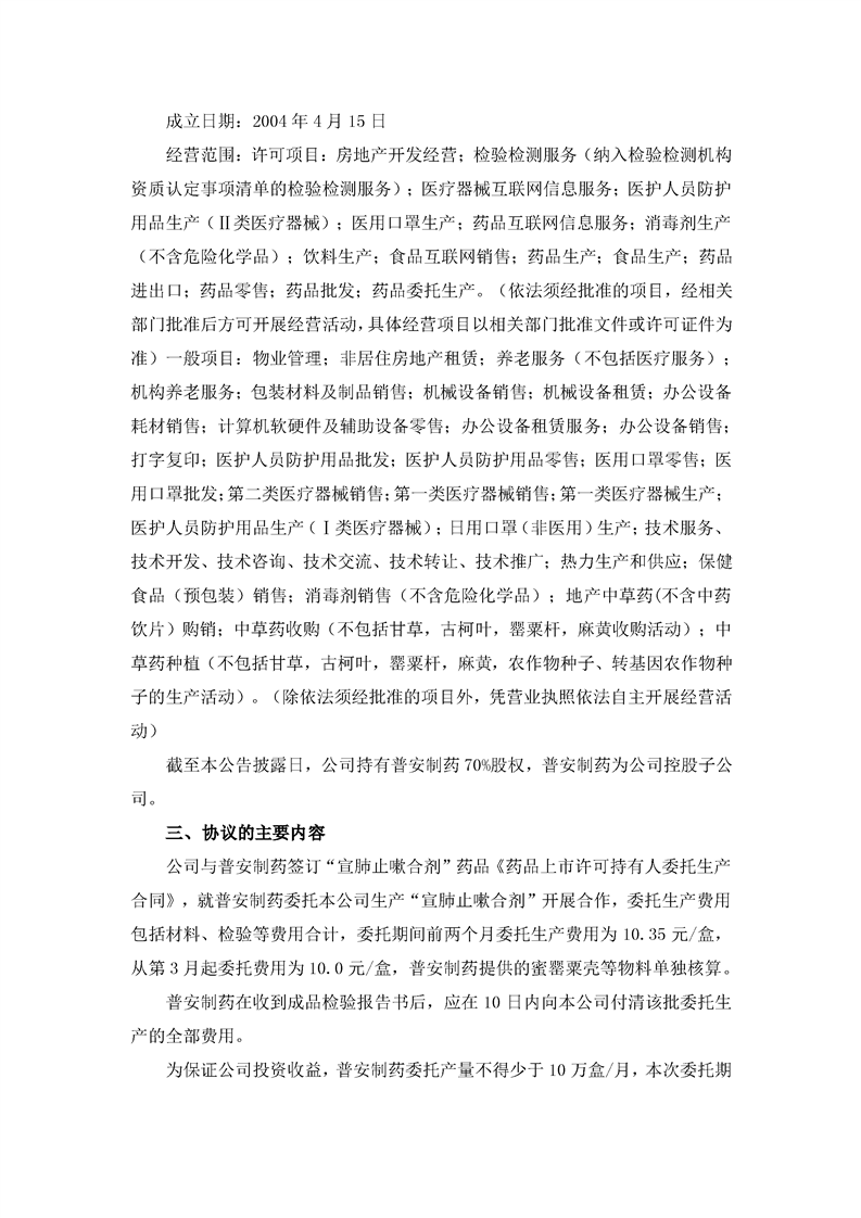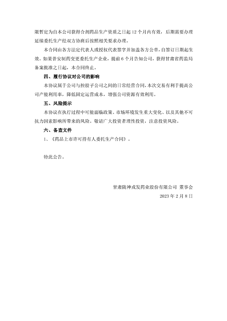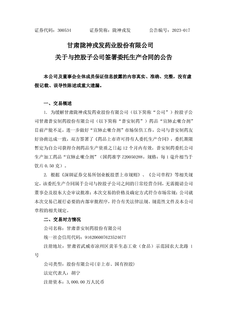 關于與控股子公司簽署委托生產合同的公告
