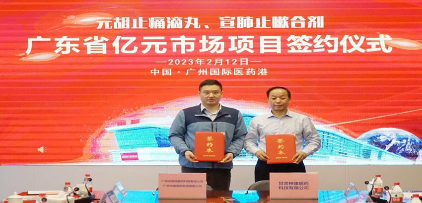 活動進入簽約和揭牌環節,元胡止痛滴丸、宣肺止嗽合劑廣東省億元市場項目簽約,甘肅省隴藥產業協會與廣東省中藥材種植行業協會戰略合作框架協議簽約,甘藥集團健康科技(廣州)有限公司揭牌依序開展。