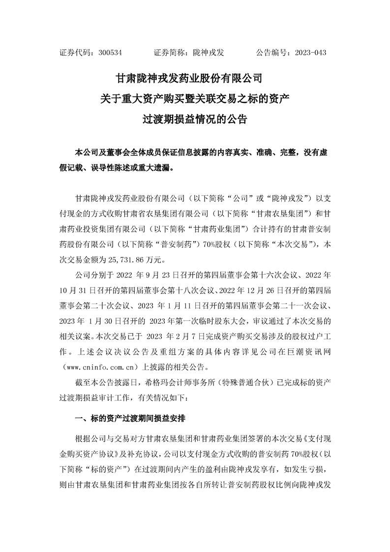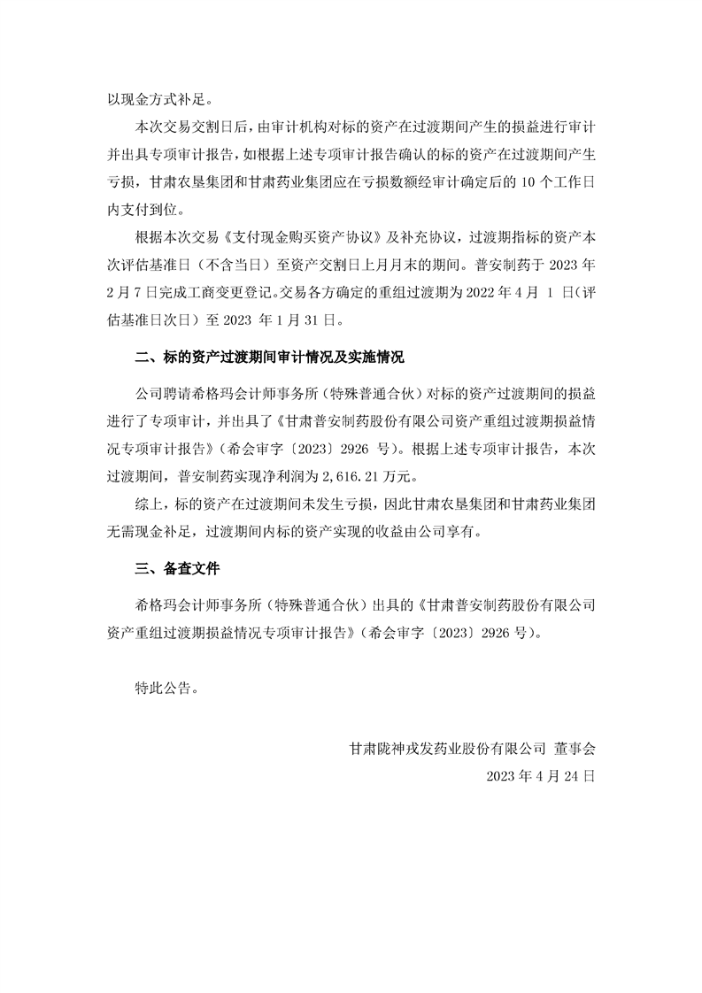 關于重大資產購買暨關聯交易之標的資產過渡期損益情況的公告
