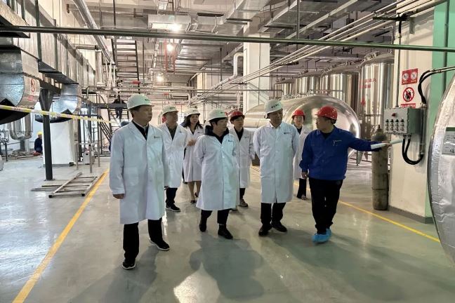 王文秀一行首先在企業產品展廳進行參觀,了解公司主要產品及市場銷售情況,隨后深入制劑車間生產一線查看藥品生產、包裝過程,并前往合劑車間和前處理提取車間生產線擴能改造項目現場,公司總經理助理孫波詳細匯報了項目改造進展及新建提取車間規劃相關情況。公司黨委書記、董事長宋敏平簡要匯報了隴神戎發2022年度及2023年一季度生產經營指標完成情況,重點工作推進和項目謀劃情況,以及下一步工作計劃和措施。