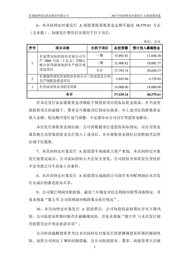 公司2023年度向特定對象發行A股股票預案