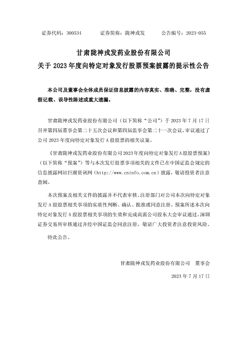 關(guān)于2023年度向特定對象發(fā)行股票預(yù)案披露的提示性公告