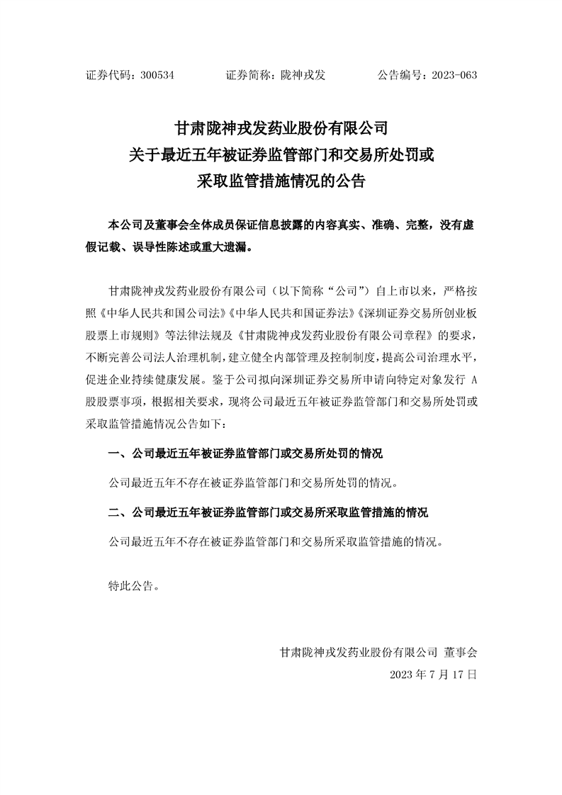 關于最近五年被證券監管部門和交易所處罰或采取監管措施情況的公告