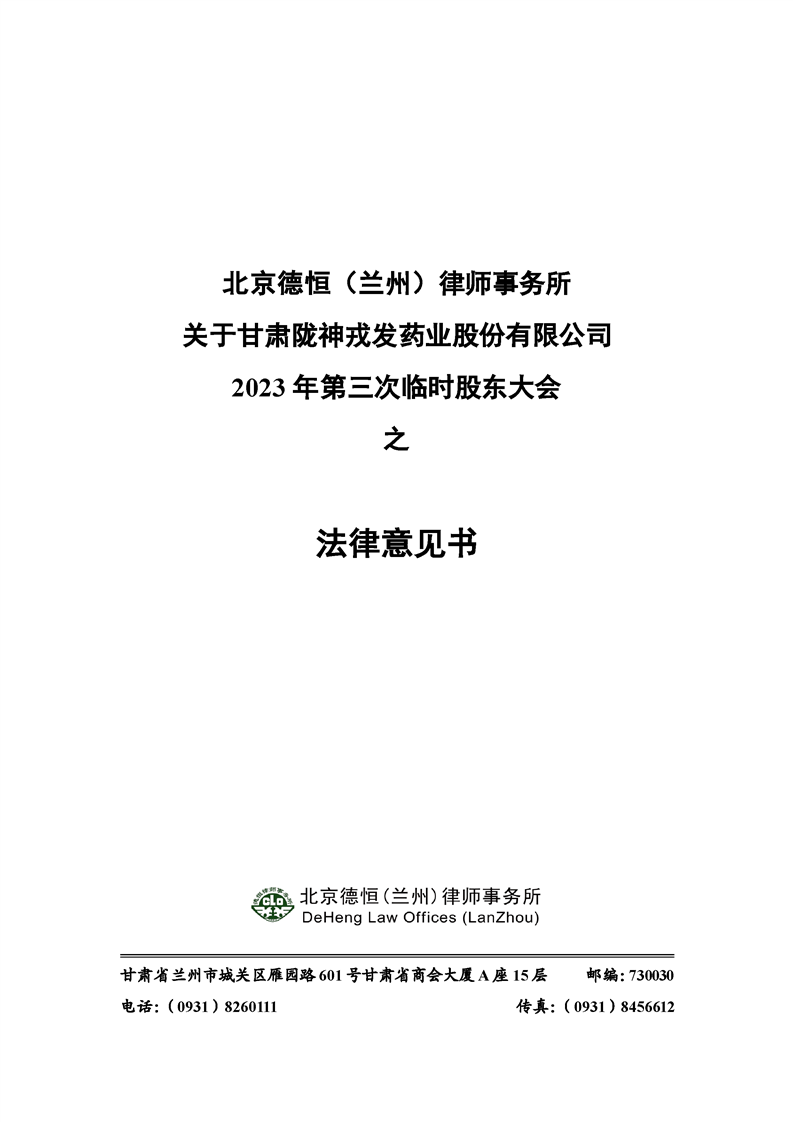 2023年第三次臨時股東大會法律意見書