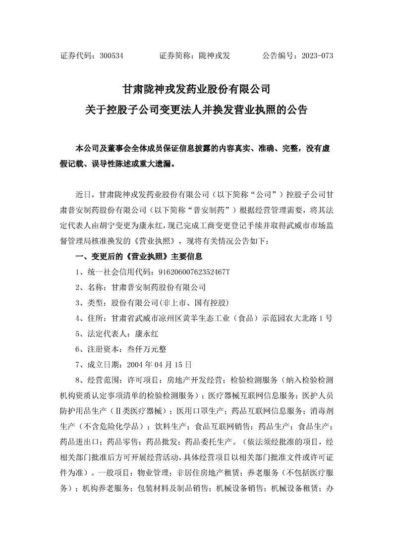 關于控股子公司變更法人并換發營業執照的公告