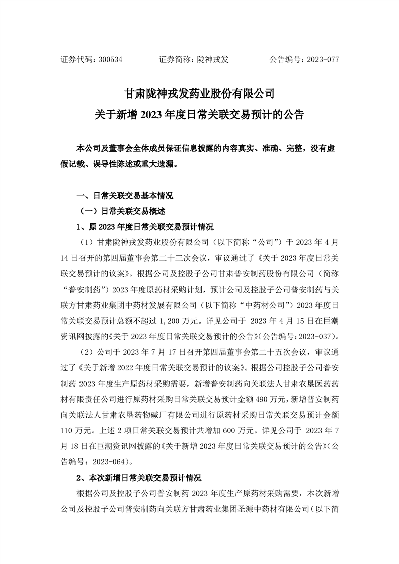 關(guān)于新增2023年度日常關(guān)聯(lián)交易預(yù)計的公告