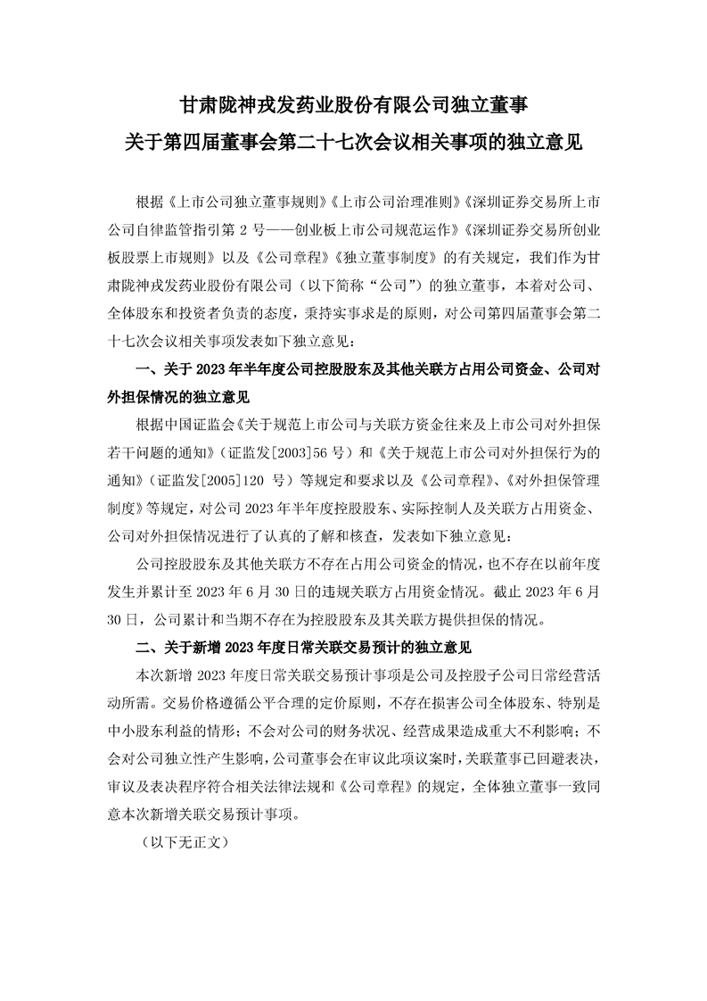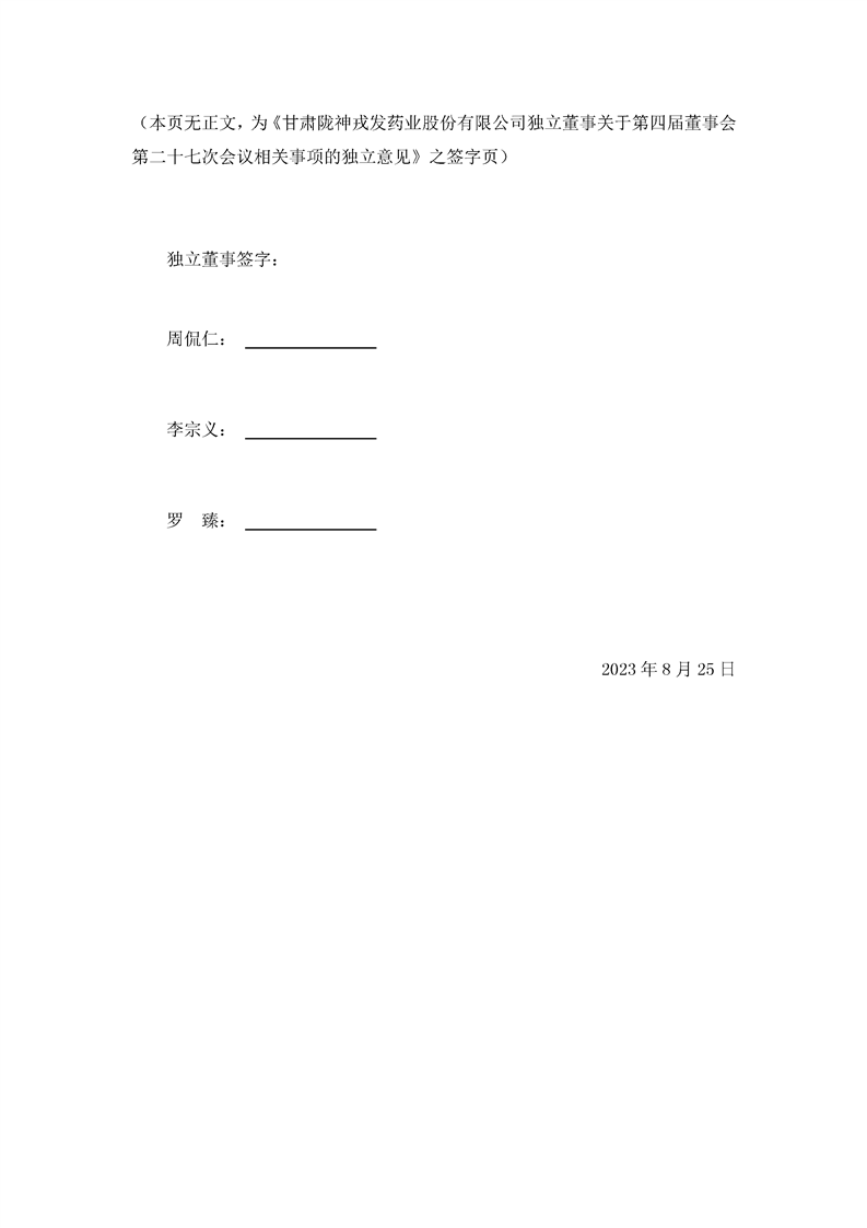 獨立董事關于第四屆董事會第二十七次會議相關事項的獨立意見