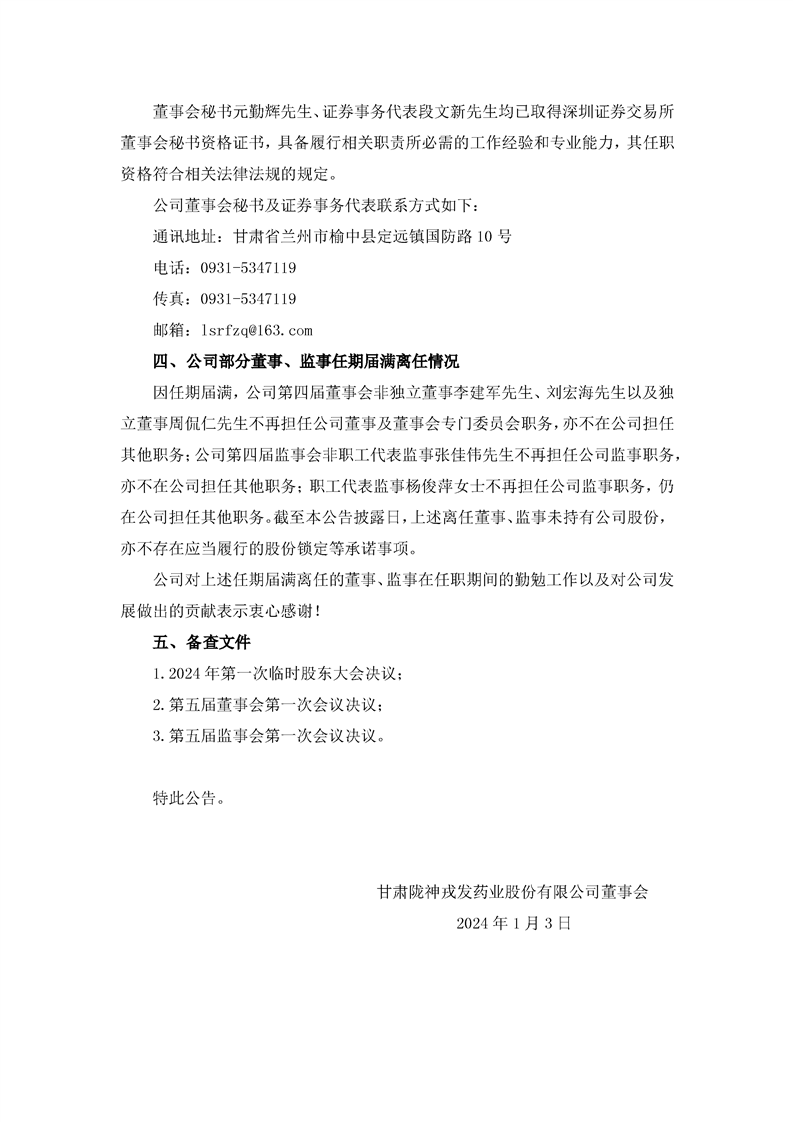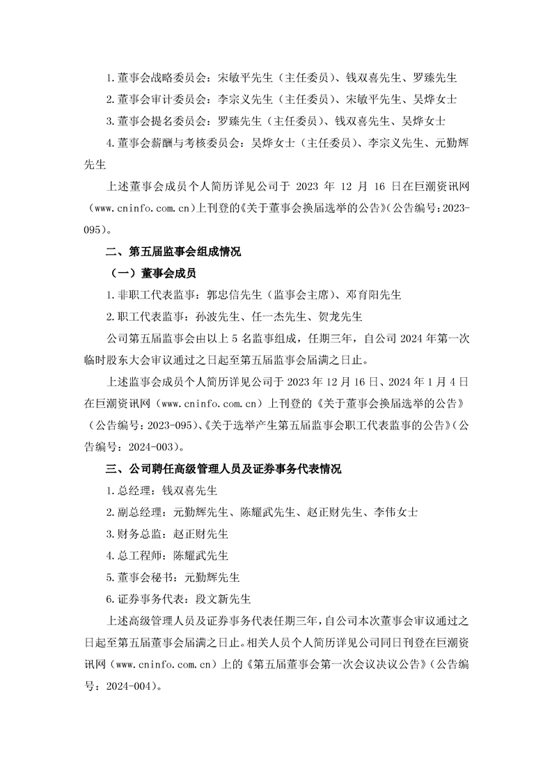 關于完成董事會、監事會換屆選舉及聘任高級管理人員、證券事務代表的公告