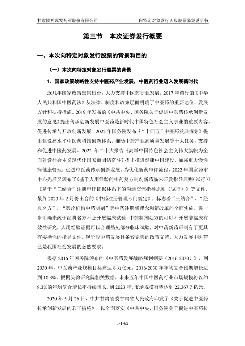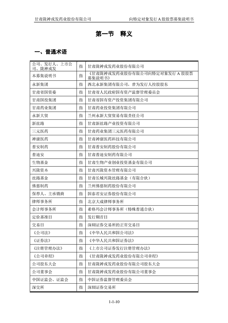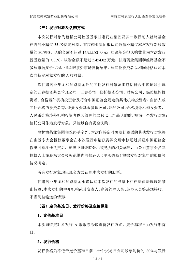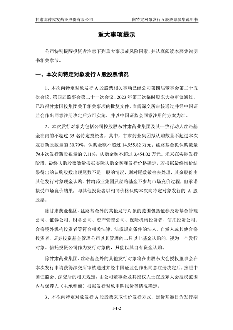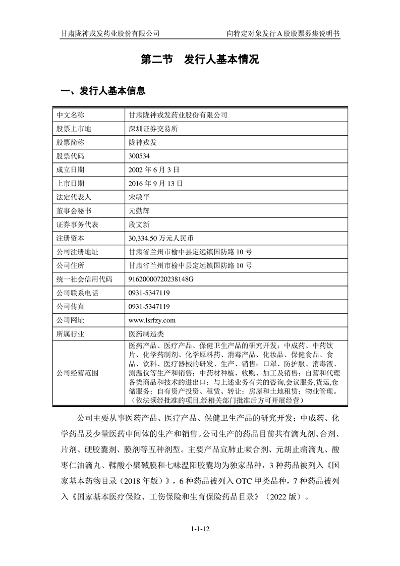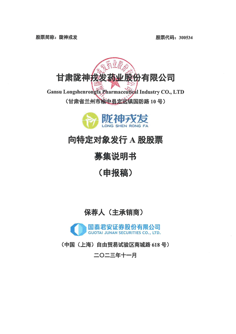 甘肅隴神戎發藥業股份有限公司向特定對象發行A股股票募集說明書(申報稿)