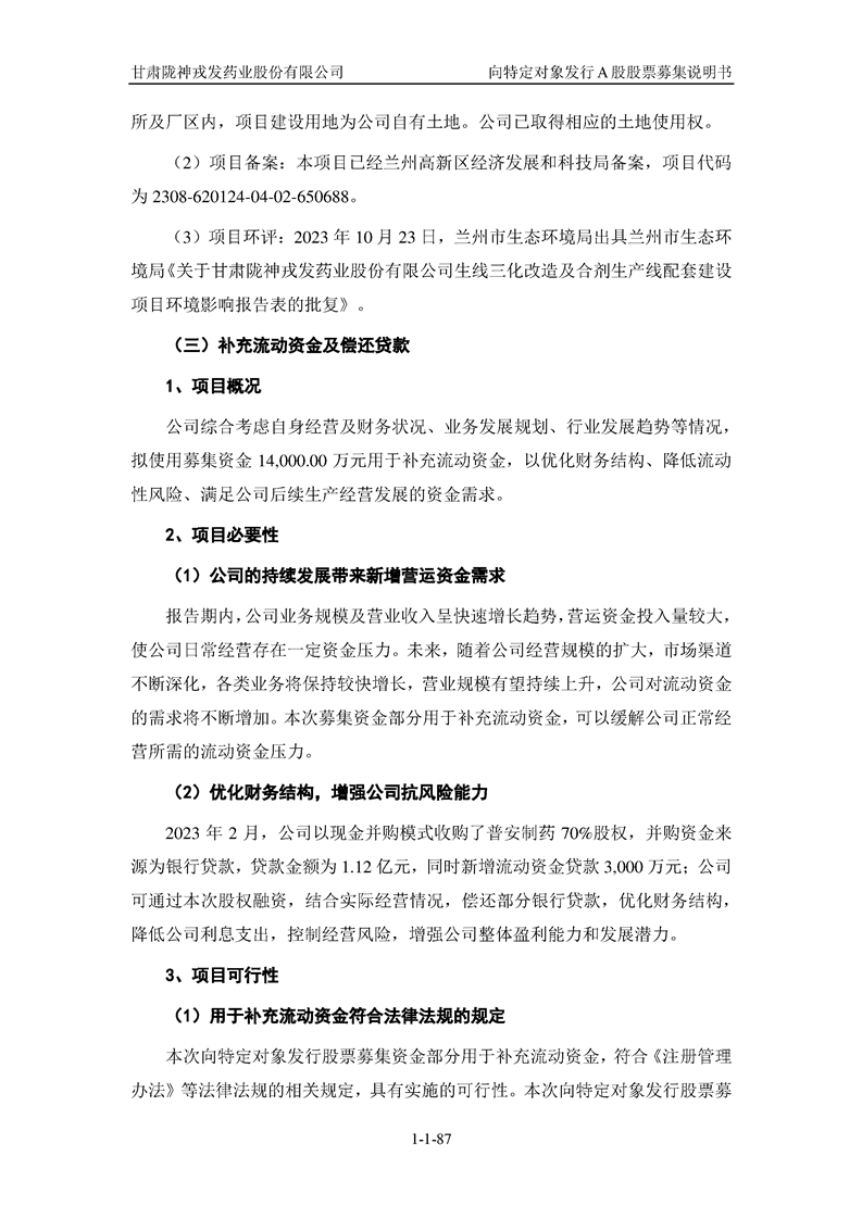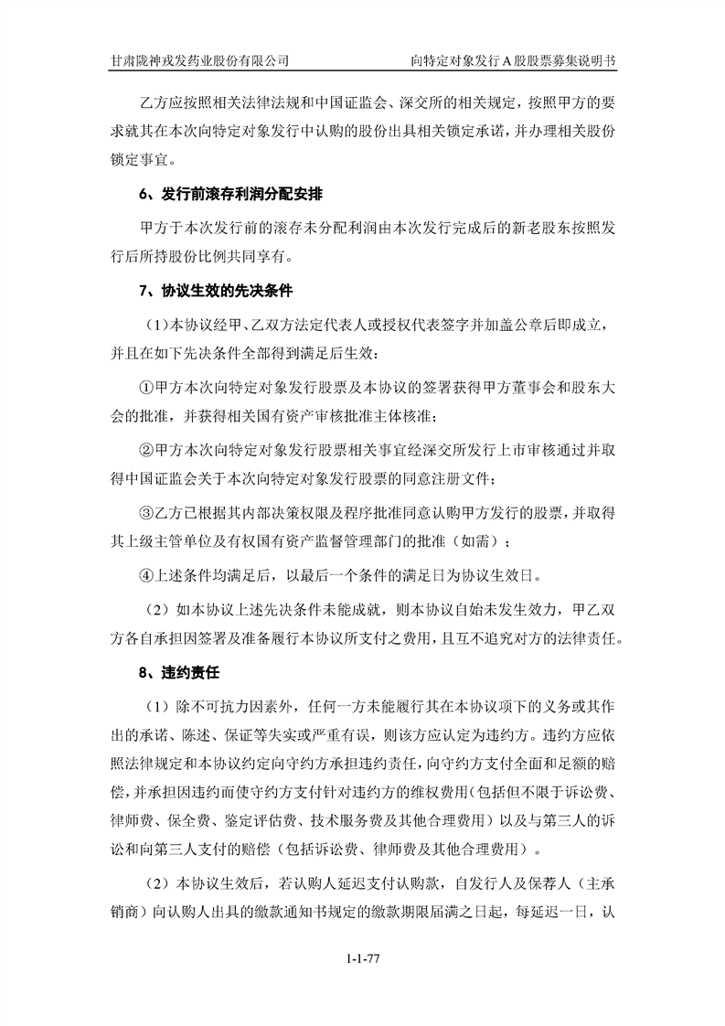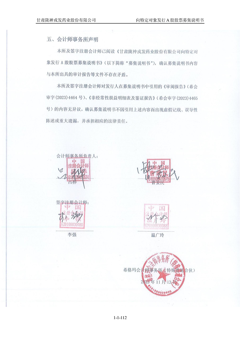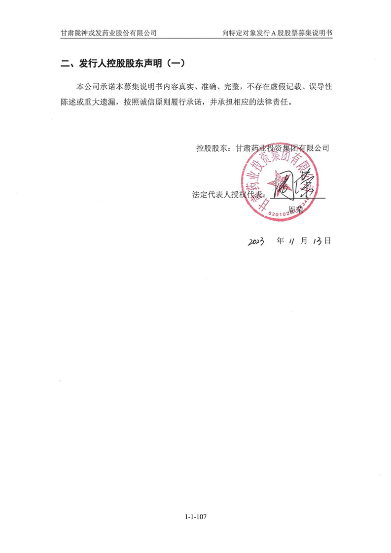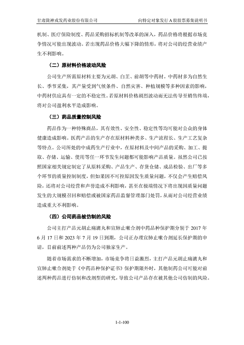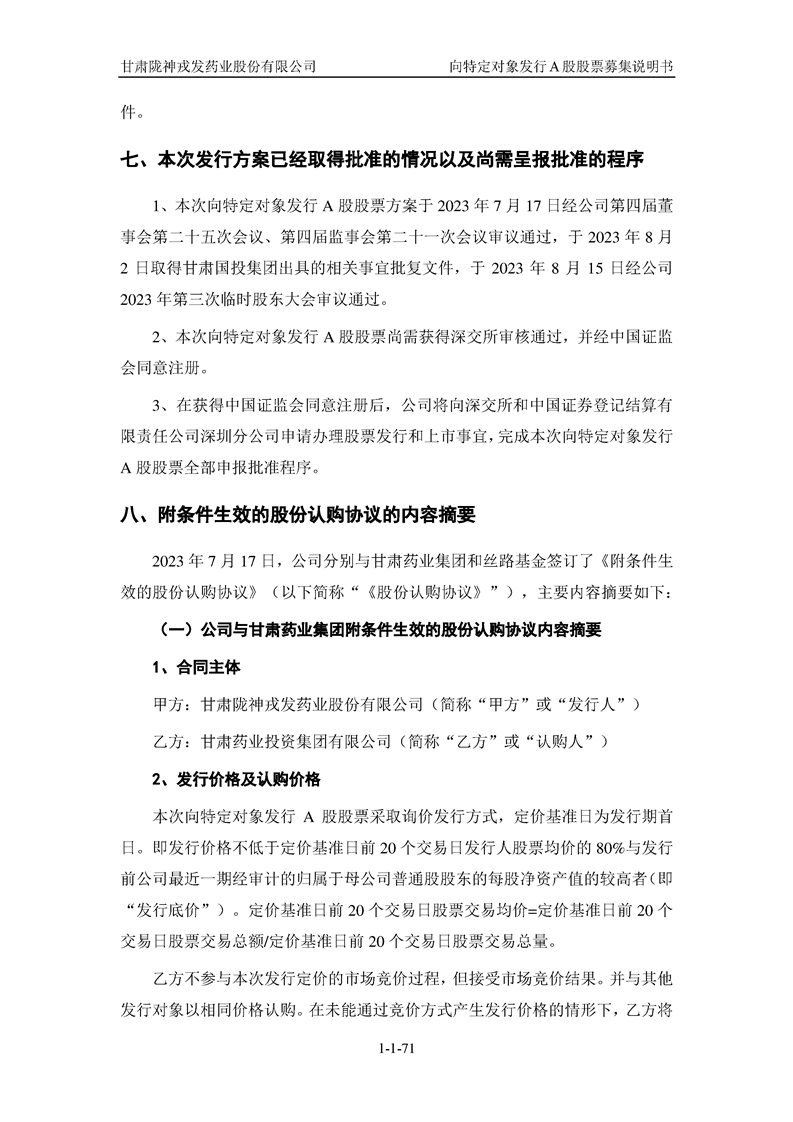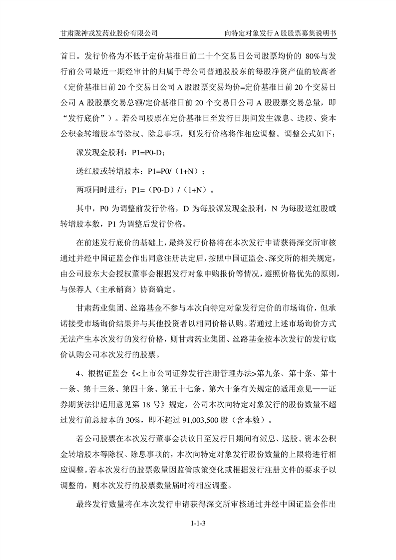 甘肅隴神戎發藥業股份有限公司向特定對象發行A股股票募集說明書(申報稿)