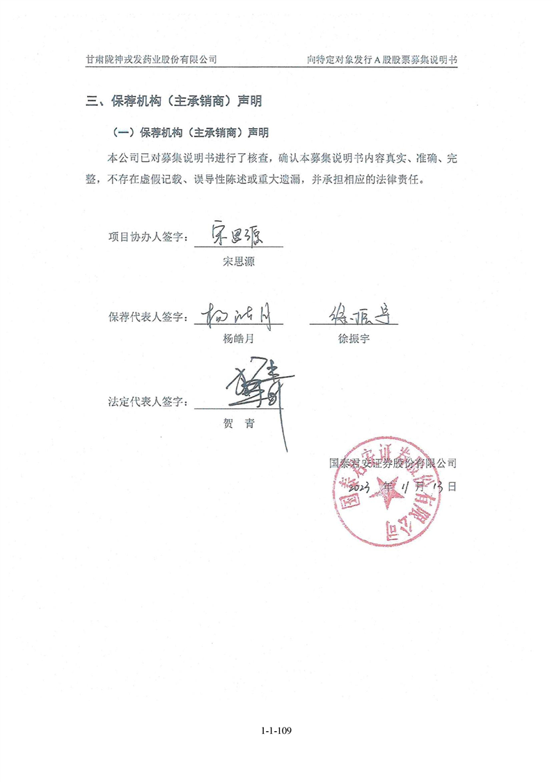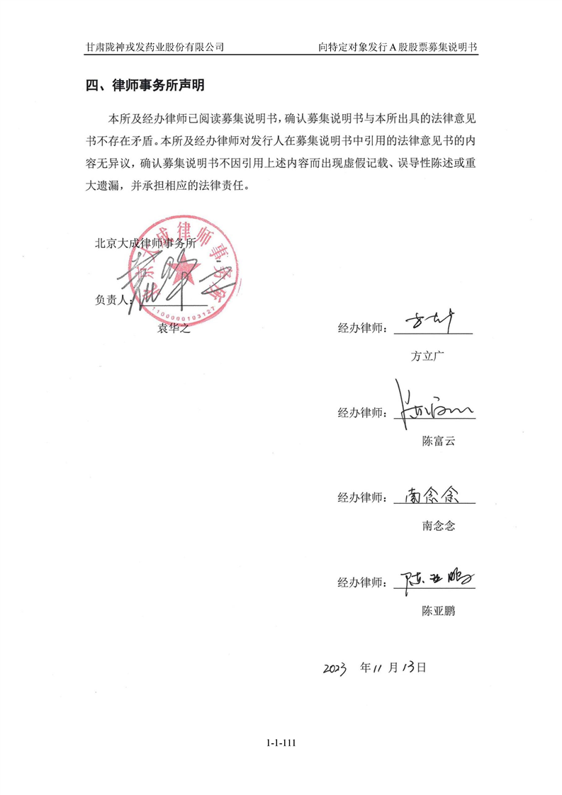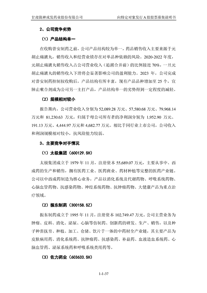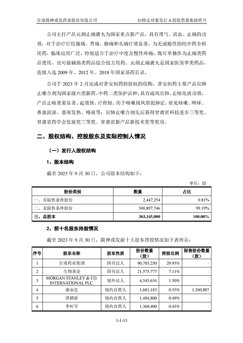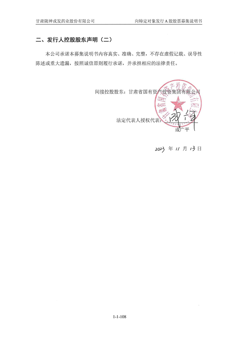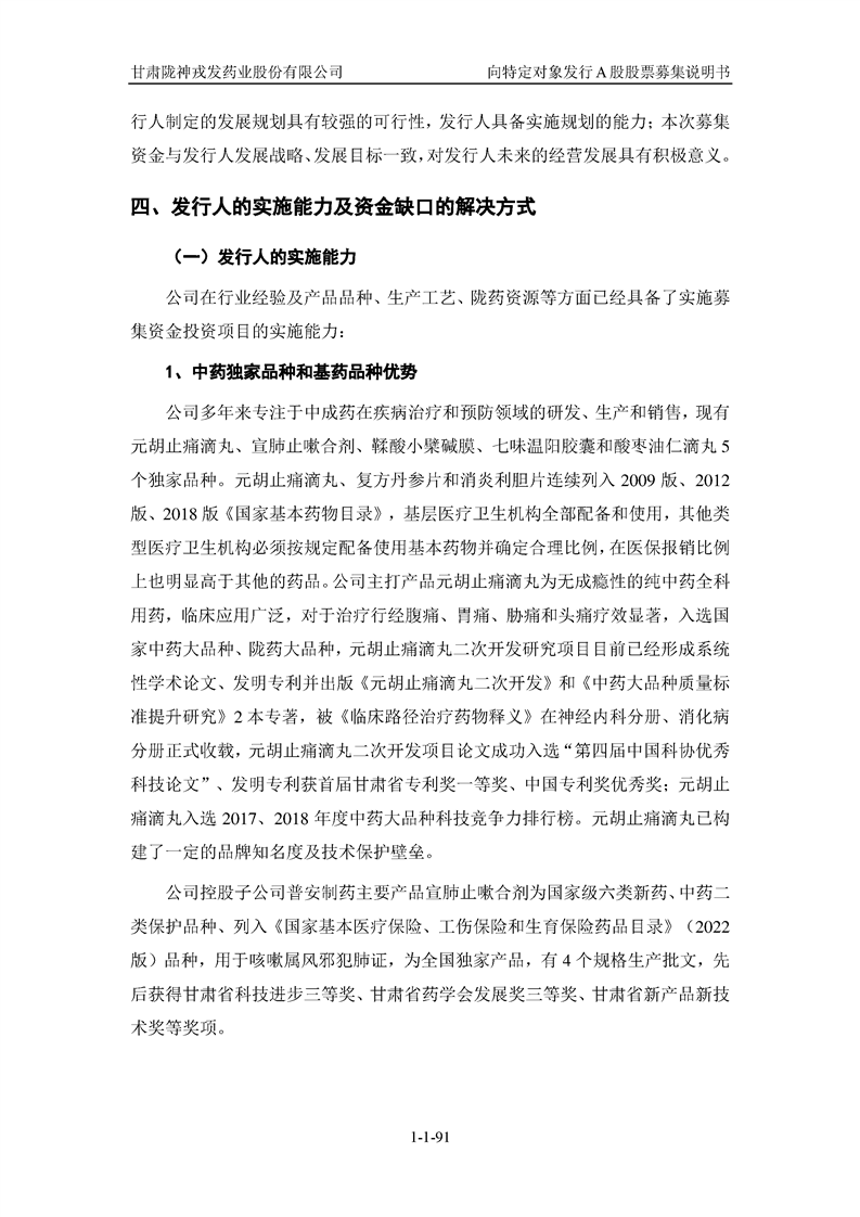 甘肅隴神戎發藥業股份有限公司向特定對象發行A股股票募集說明書(申報稿)