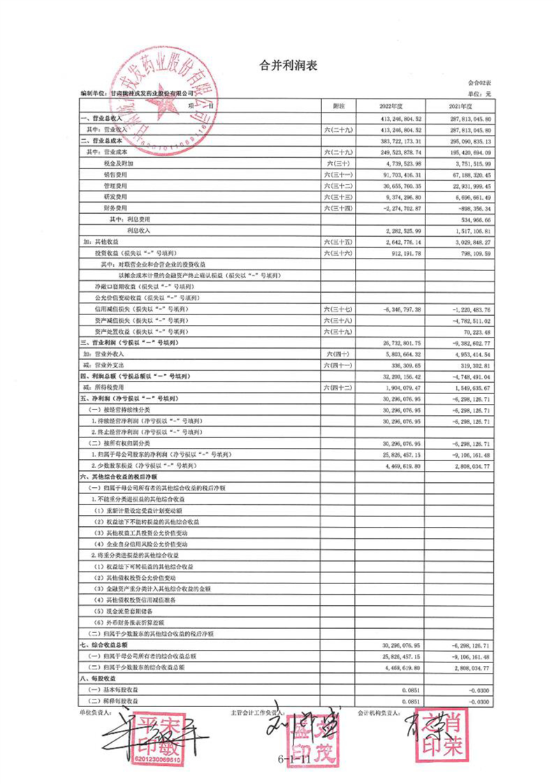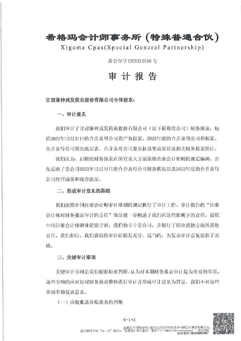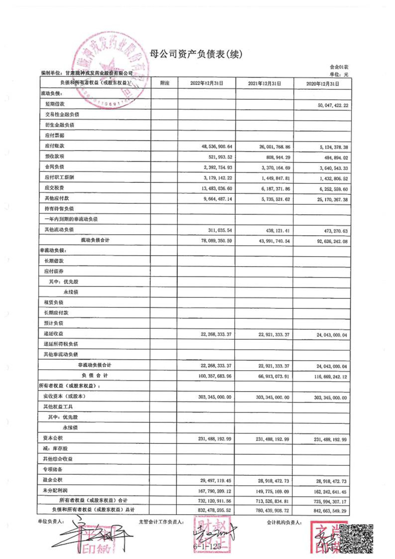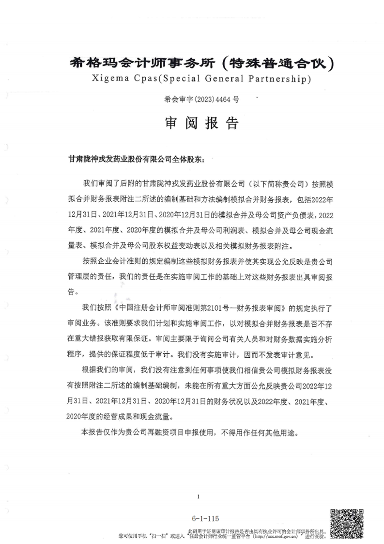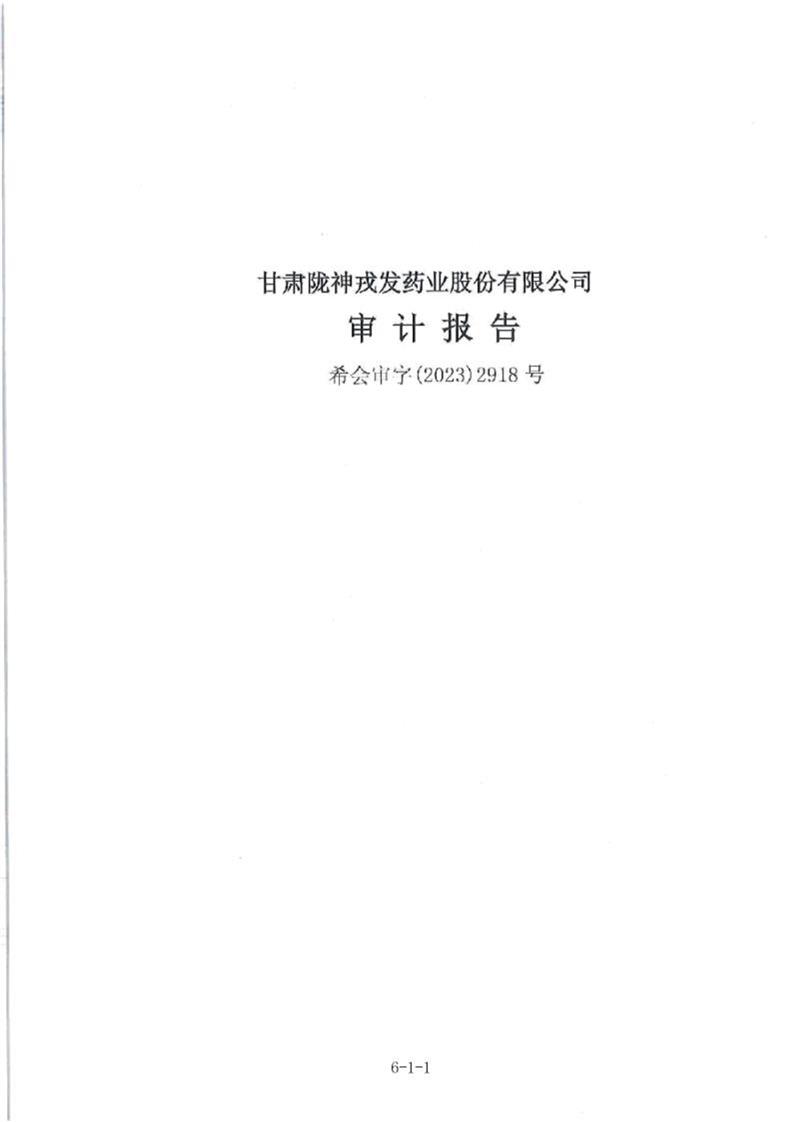 甘肅隴神戎發藥業股份有限公司最近一年的財務報告及其審計報告以及最近一期的財務報告