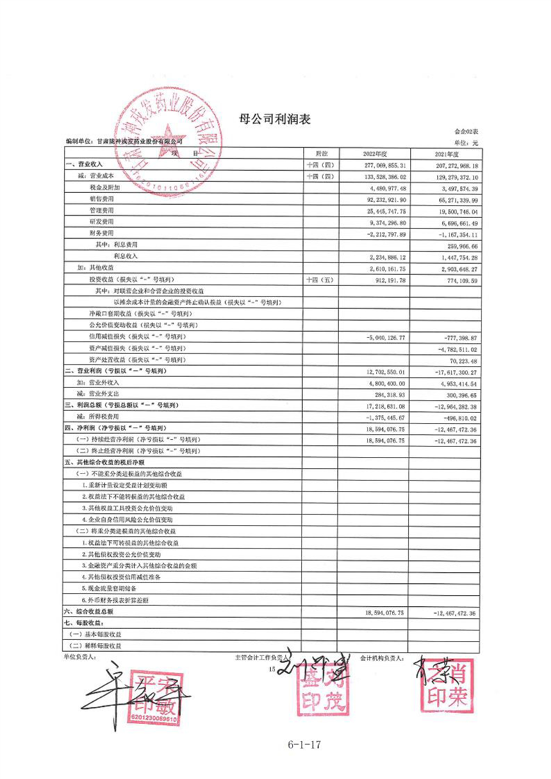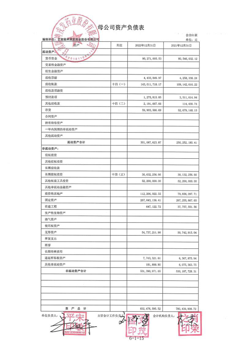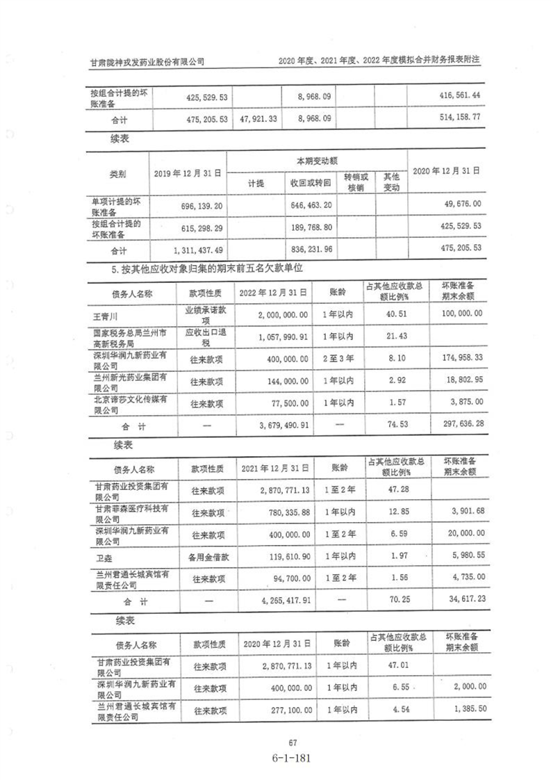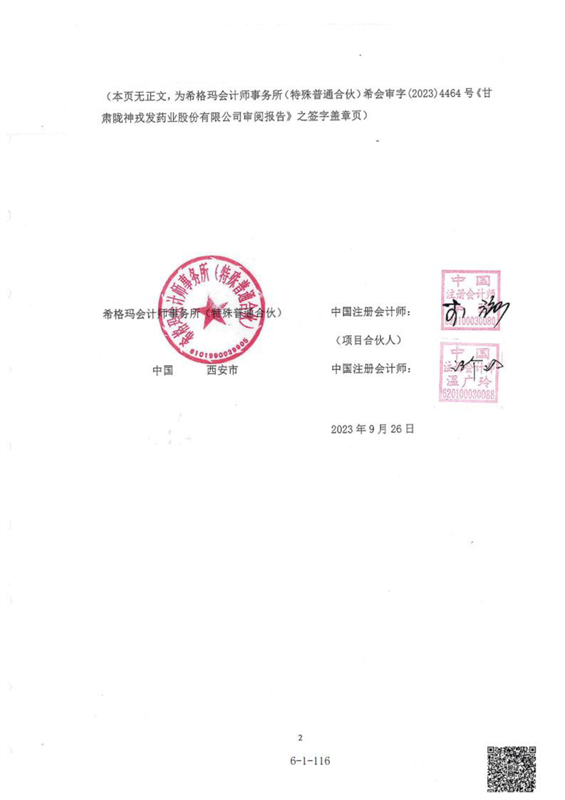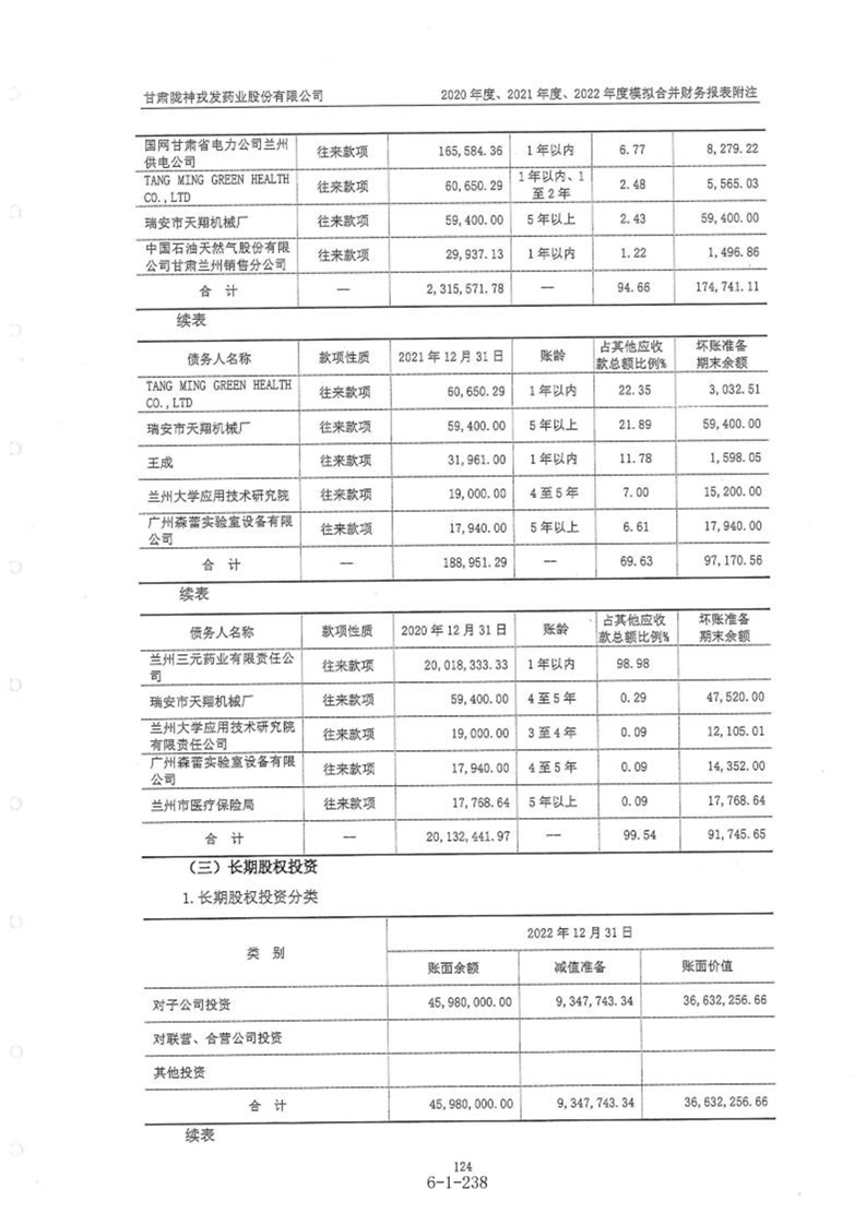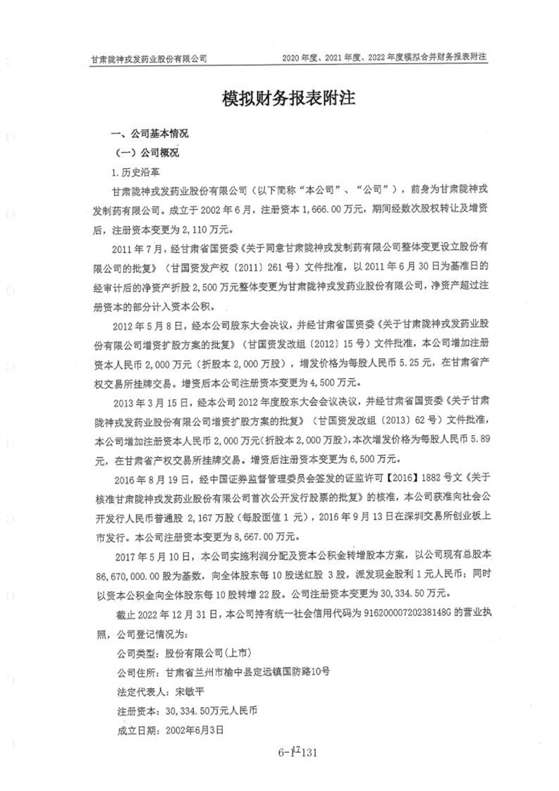 甘肅隴神戎發藥業股份有限公司最近一年的財務報告及其審計報告以及最近一期的財務報告