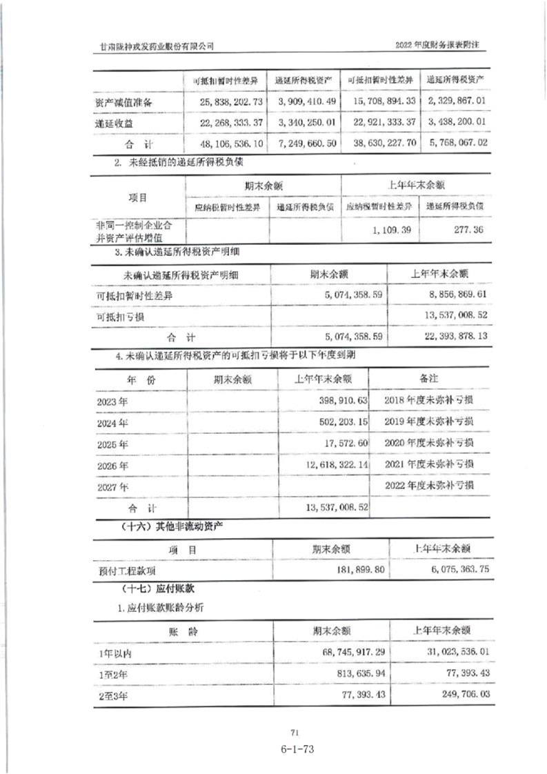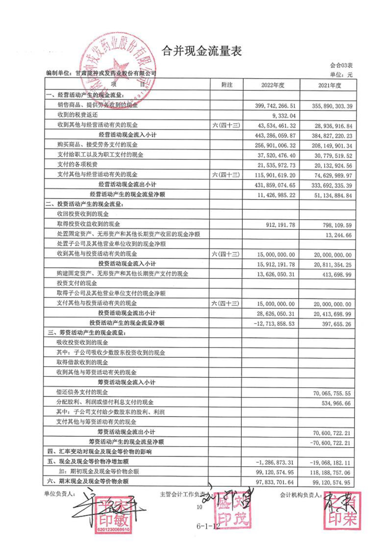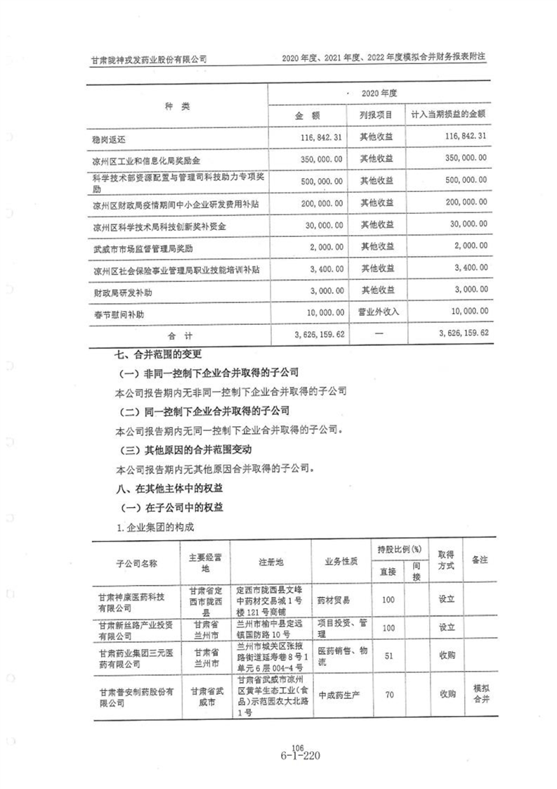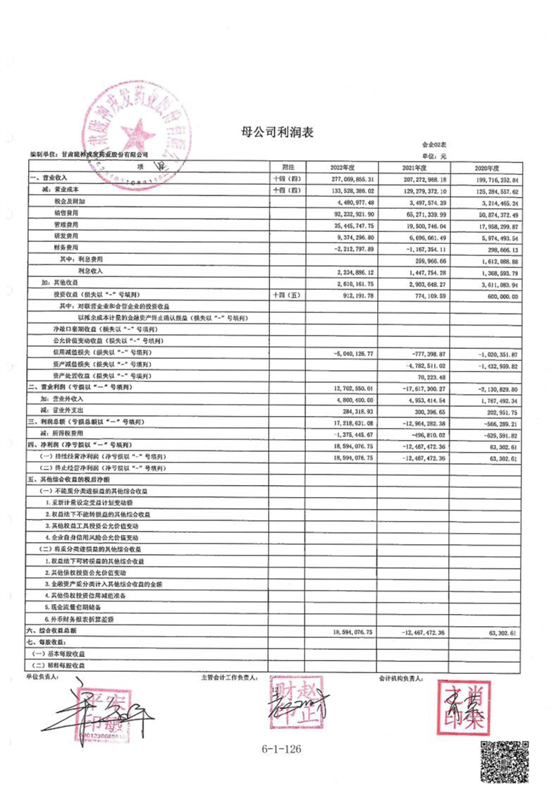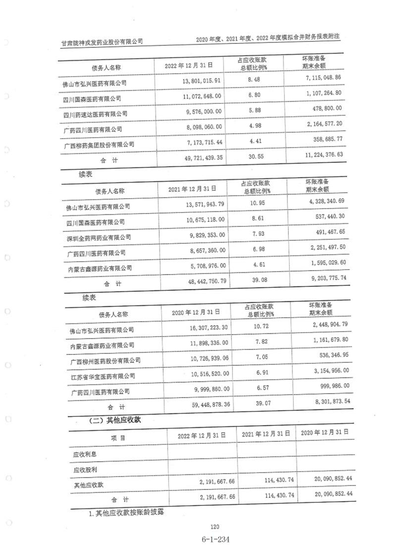 甘肅隴神戎發藥業股份有限公司最近一年的財務報告及其審計報告以及最近一期的財務報告
