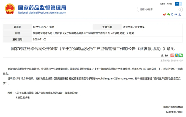 國家藥監局公開征求《關于加強藥品受托生產監督管理工作的公告(征求意見稿)》意見
