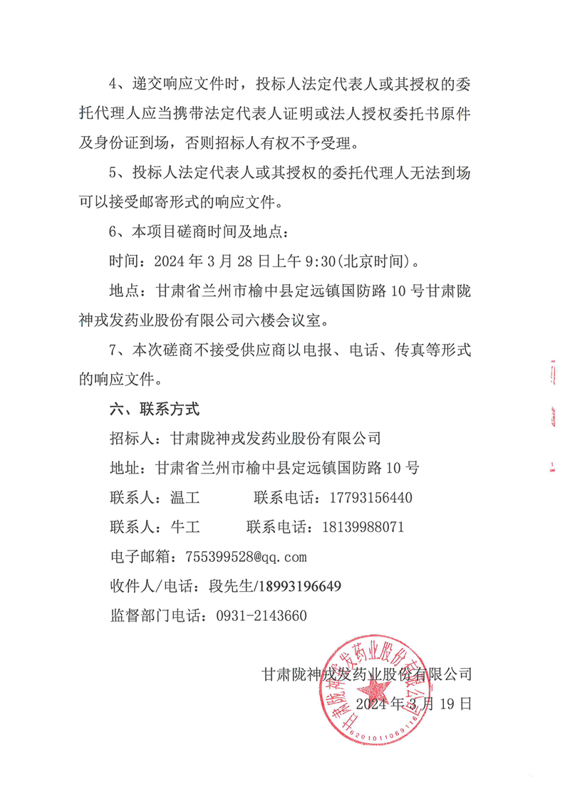 甘肅隴神戎發藥業股份有限公司年產200億粒現代中藥生產線擴能改造項目(二期)原料及成品庫房建設項目——消防及安全設施升級改造工程(二標段)第2次
