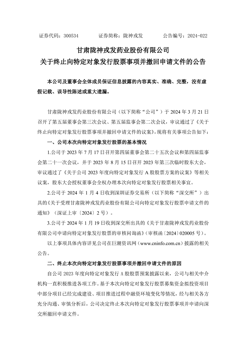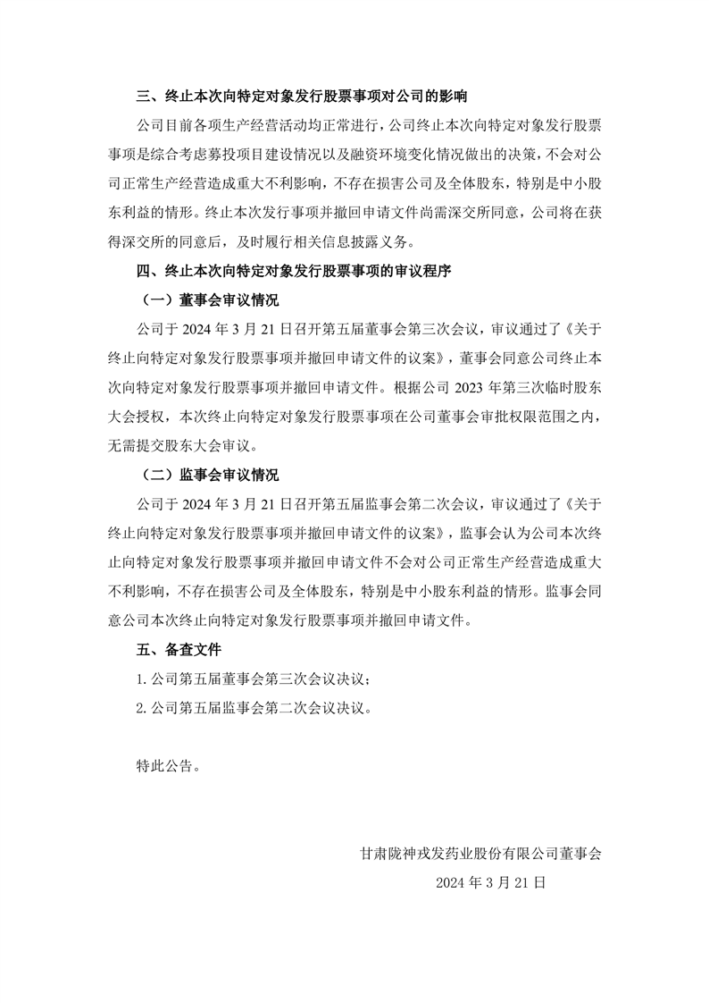 關于終止向特定對象發行股票事項并撤回申請文件的公告