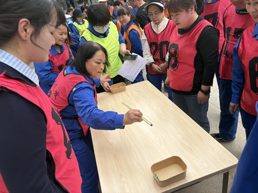 “夾珠大作戰(zhàn)” 看似簡單,實則需要極強的專注力和手部控制力。選手們手持筷子,小心翼翼地將珠子從一個容器夾到另一個容器。有的職工動作嫻熟,快速完成任務;有的則略顯緊張,珠子幾次掉落,但依然不氣餒,堅持完成比賽。