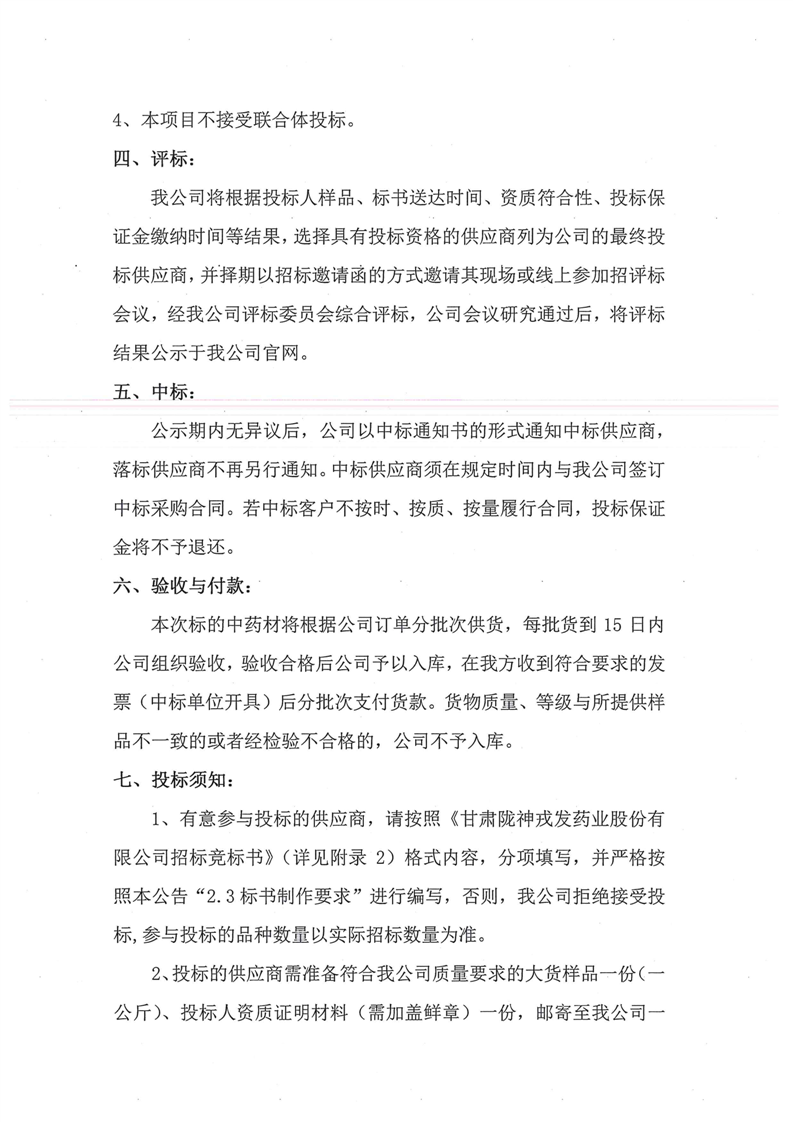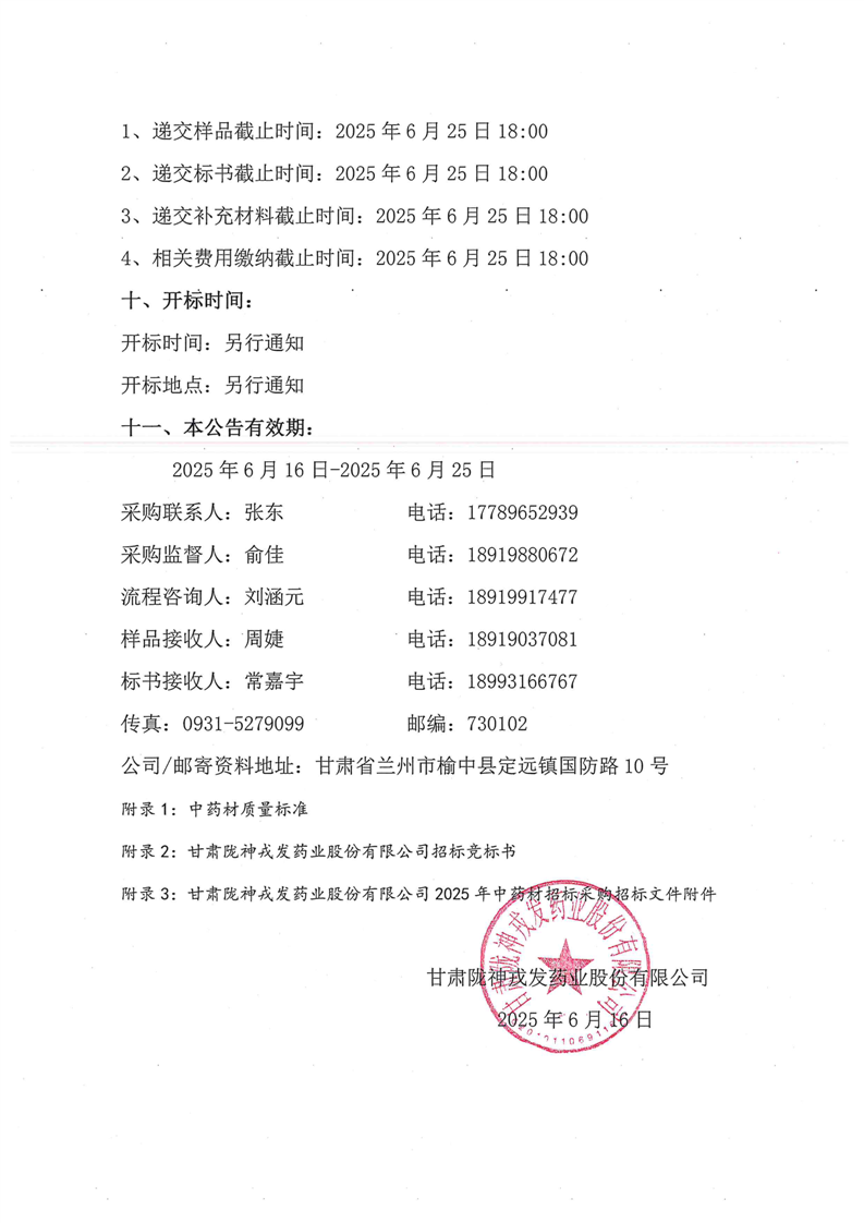 甘肅隴神戎發藥業股份有限公司2025年中藥材招標采購公告