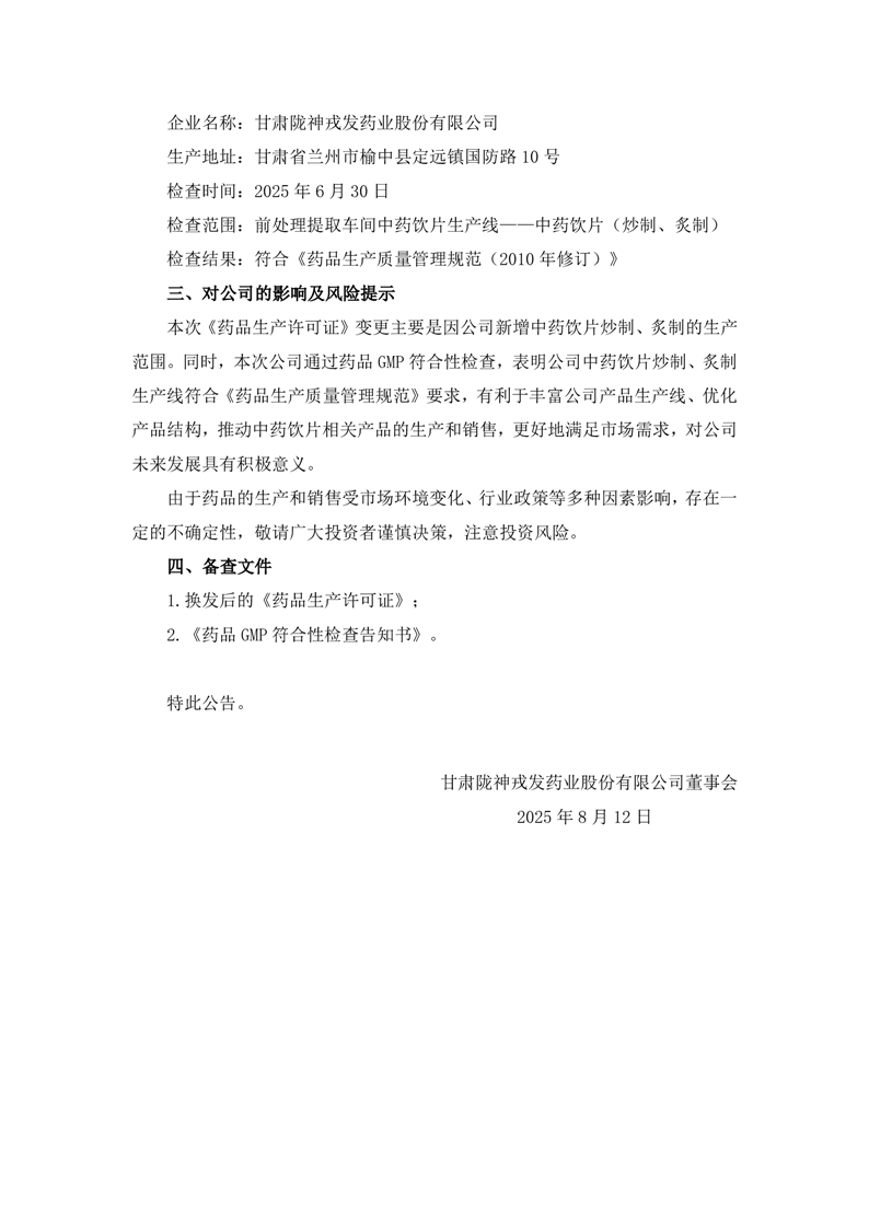 關于取得換發(fā)后的《藥品生產許可證》以及通過藥品GMP符合性檢查的公告